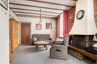 We komen de woning binnen in de vestibule, hier is de meterkast (8 groepen, 2 aardlekschakelaars) gesitueerd en de doorloop naar de hal met toegang tot de woonkamer en trapopgang naar de 1e verdieping. In de hal ligt vloerbedekking en zijn de wanden deels voorzien van lambrisering en behang. Verder is er bergruimte onder de trap en een extra kast gemaakt in de voormalige doorloop naar de keuken. De woonkamer is ruim opgezet met eethoek aan de voorzijde en zithoek met open haard in het middel van de woning. In de gehele woonkamer zijn de raamkozijnen vervangen voor kunststof kozijnen met HR glas. De gehele kamer is afgewerkt met vloerbedekking en de wanden zijn aan de voorzijde voorzien van steen strips en granol op de andere wanden.
