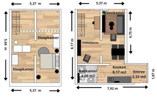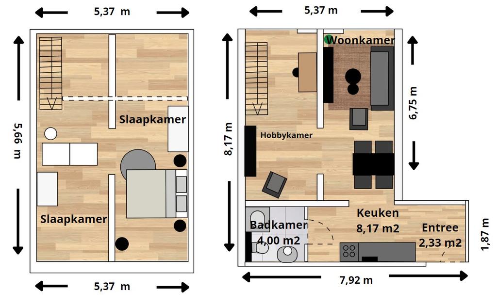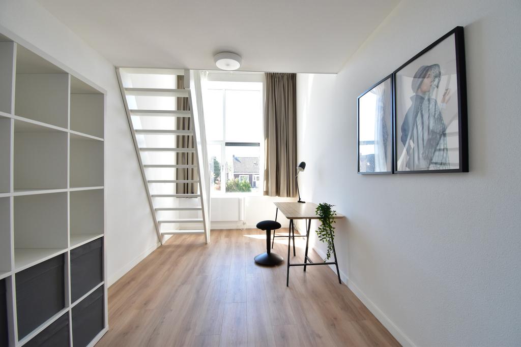 De vide is ca. 26 m2 en in tweeën gesplitst. Waarbij een gedeelte nu als slaapkamer dient maar waar je de overige ruimte ook als tweede slaapkamer zou kunnen gebruiken.