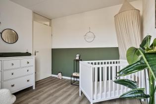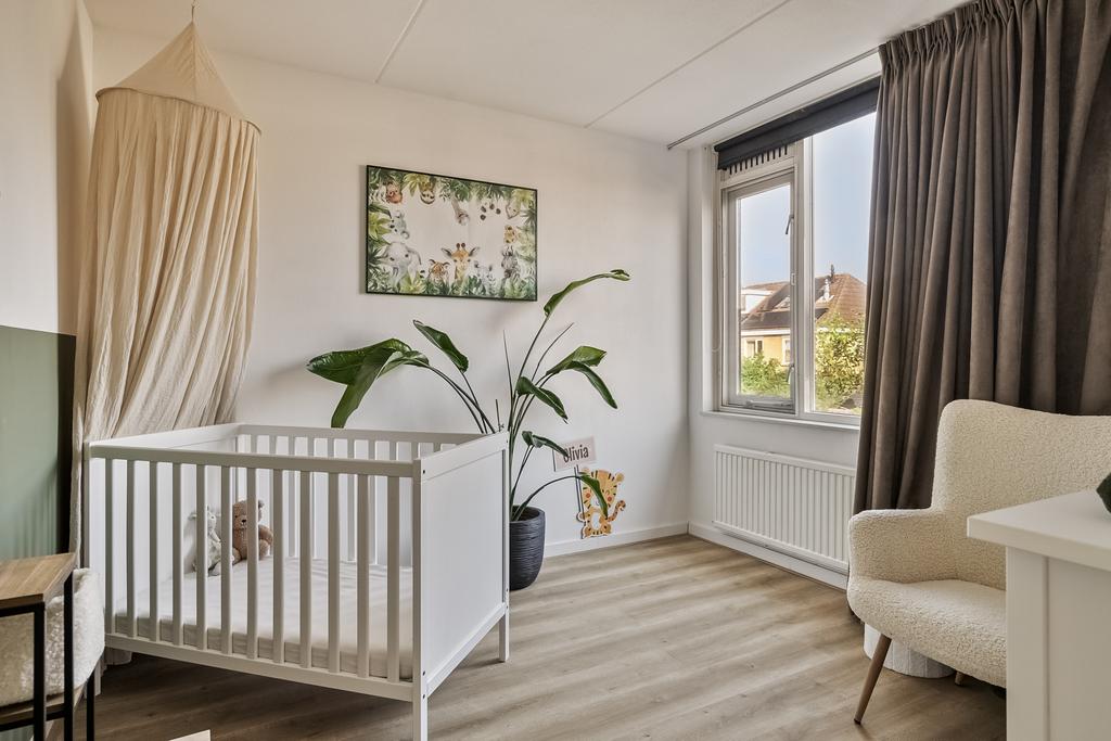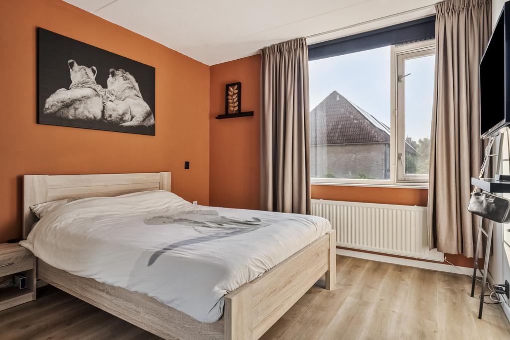 Vanaf de overloop zijn alle 3 de slaapkamers en badkamer bereikbaar. De hoofdslaapkamer ligt aan de voorzijde van de woning, is ruim opgezet en is voorzien van een nette laminaatvloer. De vloer is tevens over de gehele verdieping doorgetrokken (m.u.v. de badkamer). De 2e slaapkamer ligt eveneens aan de voorzijde en is de kleinste qua afmetingen, een ideale werkruimte, kastenkamer of kinderkamer. De 3e slaapkamer ligt aan de achterzijde van de woning en is momenteel in gebruik als kinderkamer.