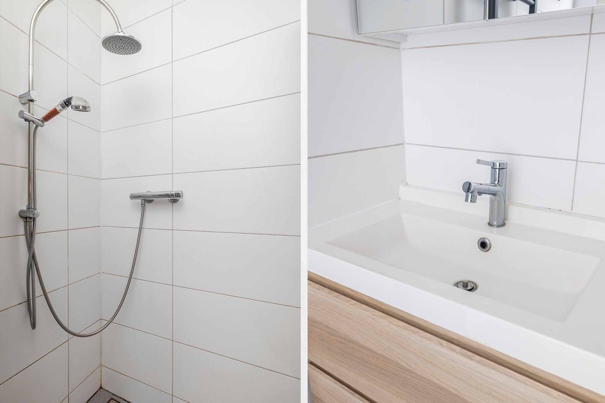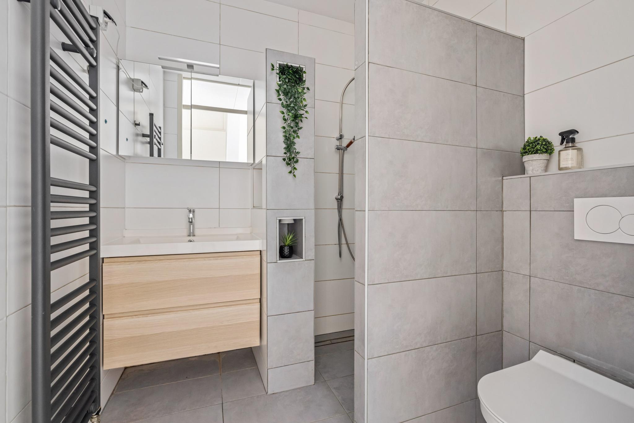 De luxe badkamer is modern en stijlvol afgewerkt met een designradiator, een zwevend closet, een inloopdouche met zowel een regendouche als een handdouche, en een wastafelmeubel. De badkamer is volledig betegeld en uitgerust met mechanische ventilatie voor optimaal comfort.