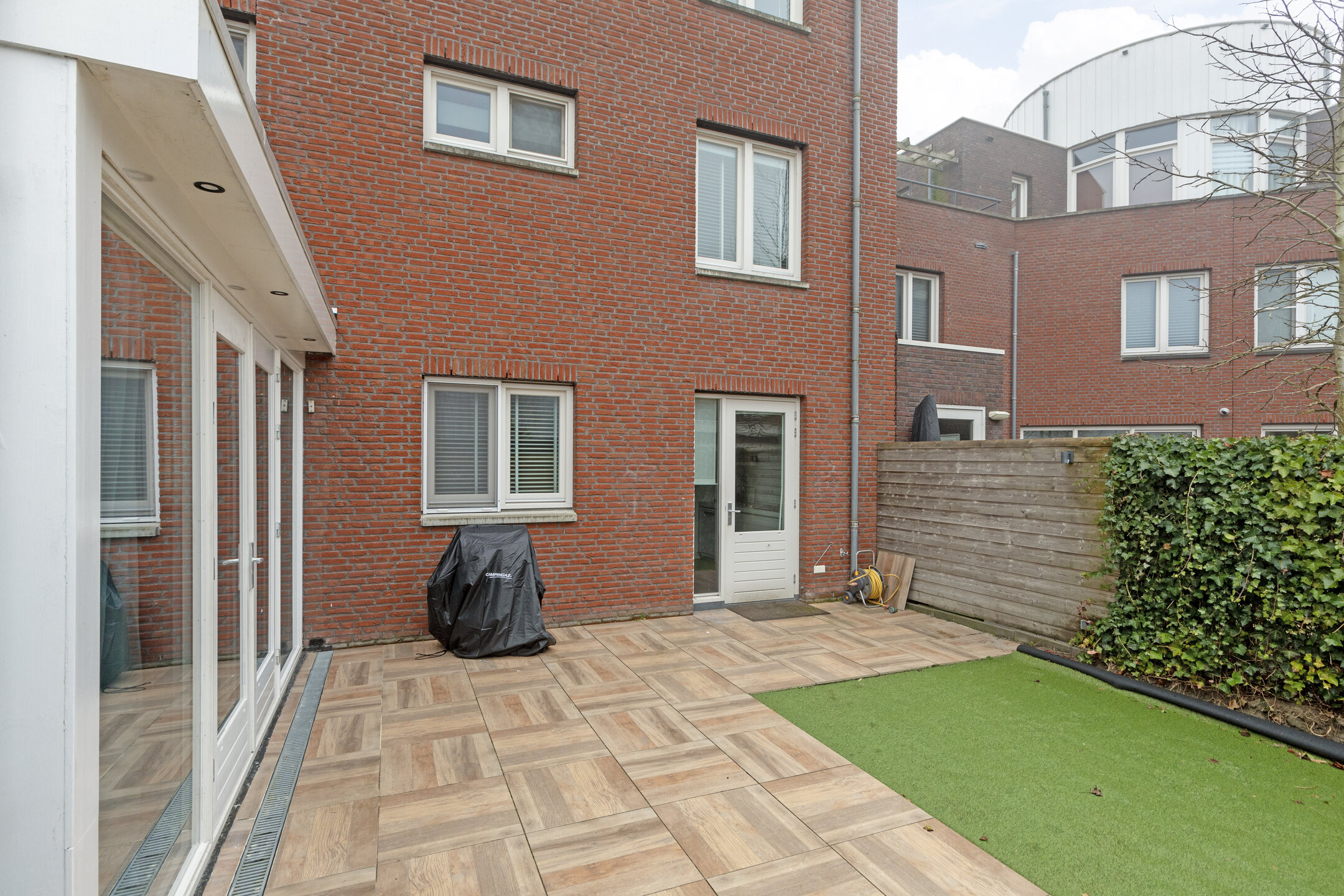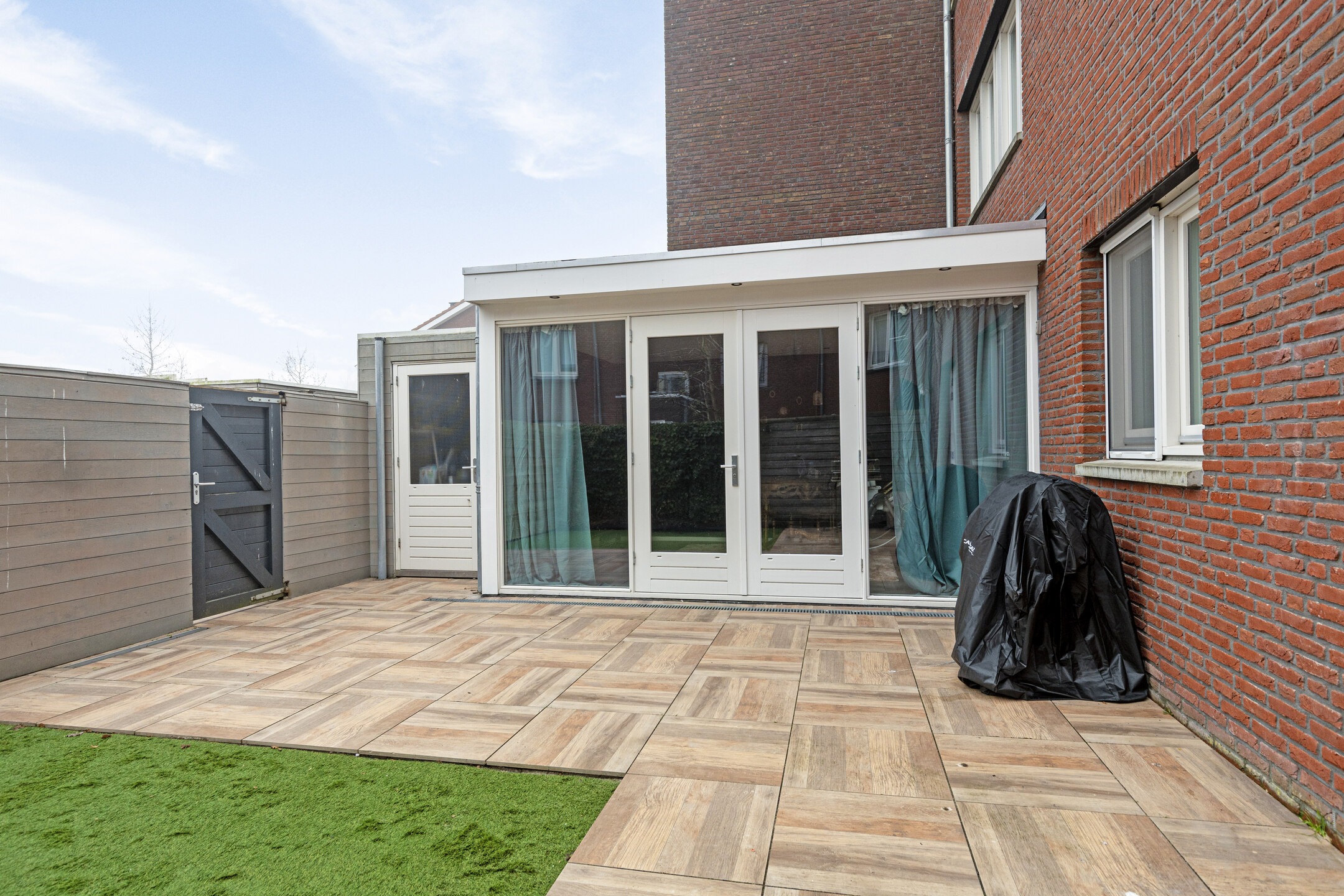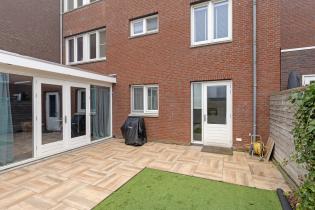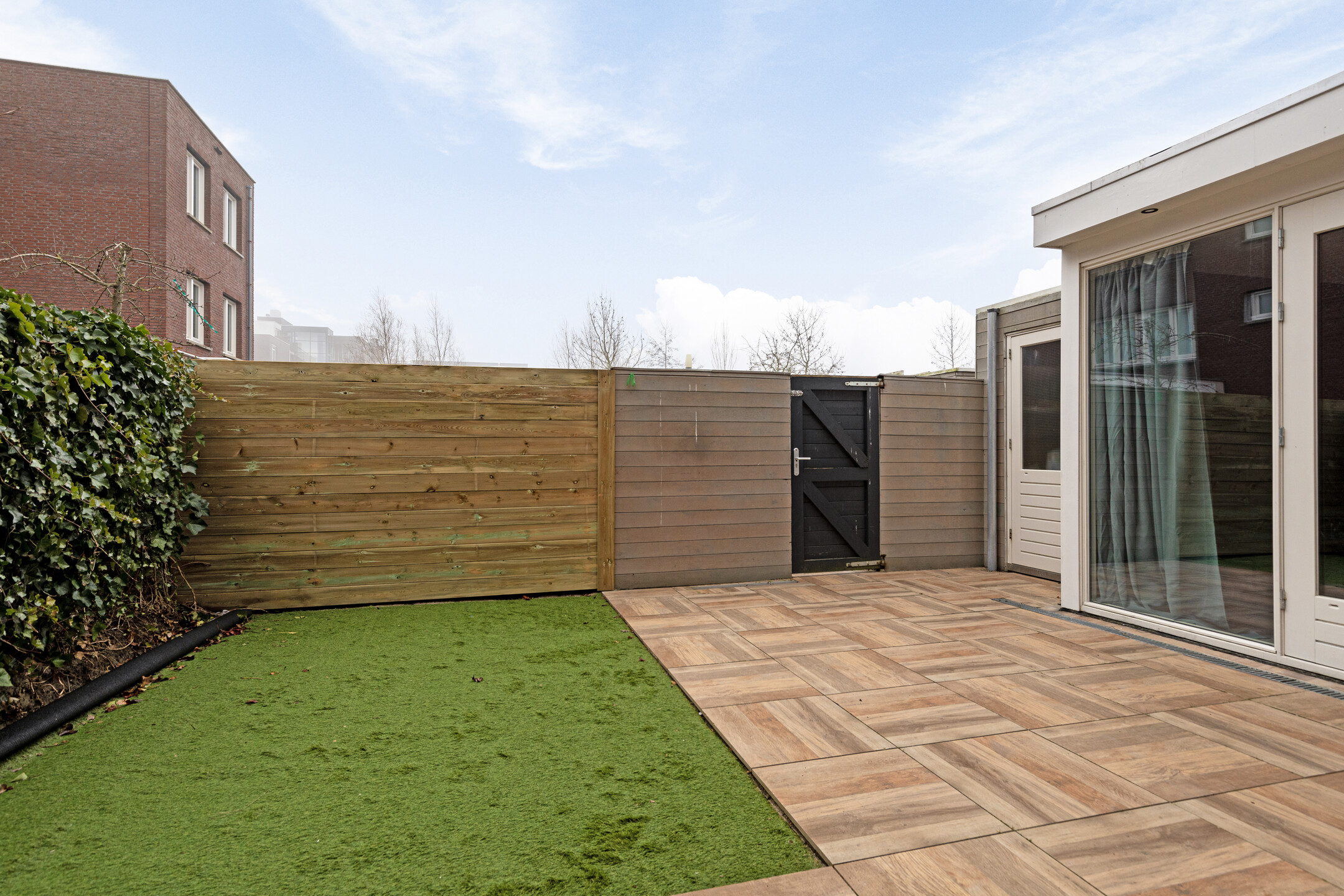 De onderhoudsvriendelijke achtertuin ligt op het oosten en is speels ingericht met bestrating en kunstgras. U vindt hier een buitenkraan, verlichting, een berging en een poort die toegang biedt tot de eigen parkeerplaats achter de woning.