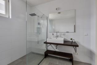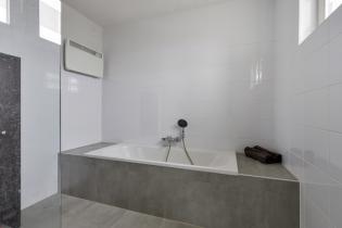 Ruime overloop met trapopgang naar de 2e verdieping, separaat toilet, 3 grote slaapkamers en een moderne badkamer met ligbad, regendouche, handdouche en een fraai wastafelmeubel. Ook deze verdieping is geheel voorzien van vloerverwarming.