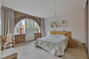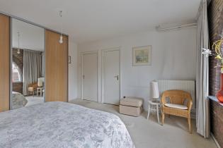 De hoofdslaapkamer ligt aan de voorzijde en heeft dankzij de karakteristieke toogramen en het aangrenzende balkon een unieke uitstraling. Dit is een fijne, royale kamer waar je ’s ochtends wakker wordt met uitzicht op de brede, groene straat. De kamer beschikt over een grote garderobekast van Hamers en een directe doorgang naar de badkamer.