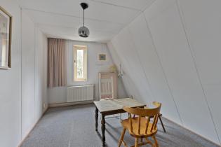 Er zijn twee slaapkamers op deze verdieping. De kamer aan de voorzijde is een praktische ruimte, ideaal als logeerkamer of rustige werkkamer. Deze kamer beschikt over een wastafel en heeft toegang tot een extra bergzolder.