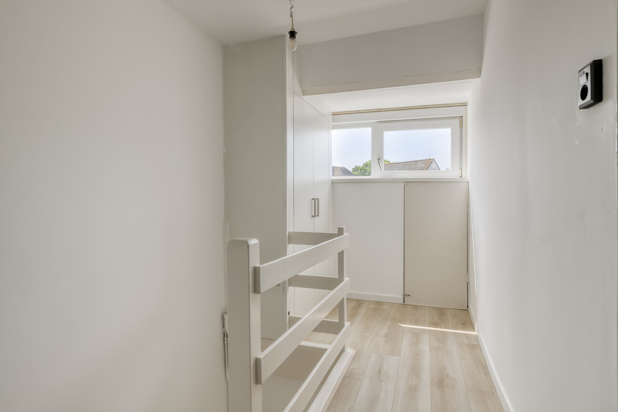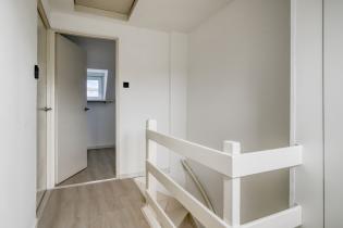 Vanaf de overloop zijn drie slaapkamers en de badkamer bereikbaar.