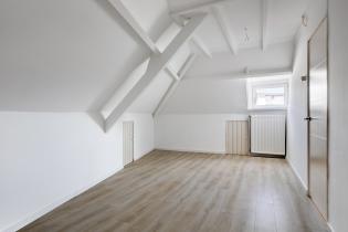Op de zolderverdieping bevinden zich nog twee slaapkamers, beide afgewerkt met laminaatvloeren en gestucte wanden. De overloop biedt tevens plaats aan de cv-installatie (geplaatst in 2024) en geeft toegang tot een handige bergzolder via een vlizotrap.