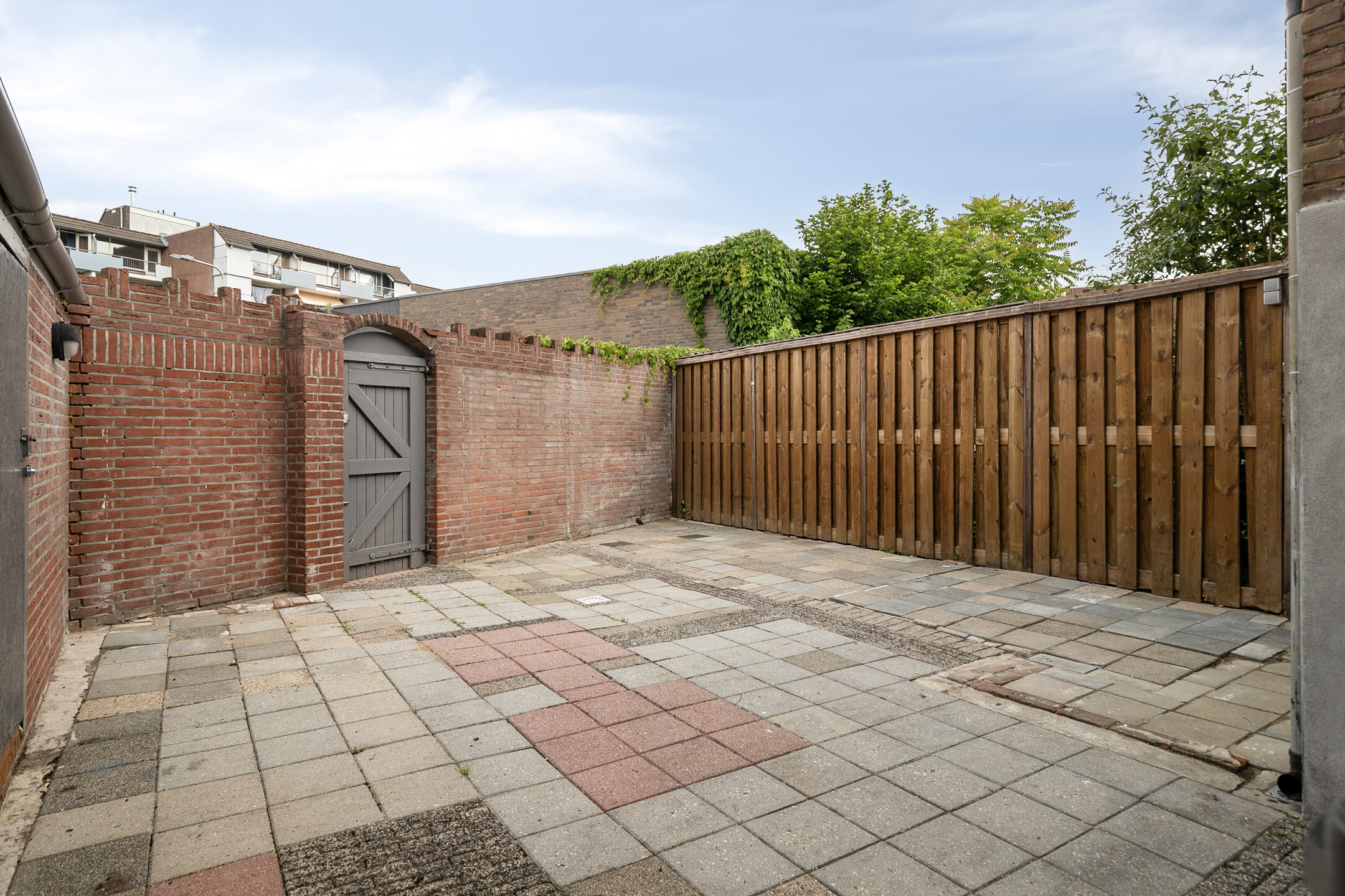 Via de keuken bereik je de onderhoudsvriendelijke achtertuin, die volledig is bestraat. Hier vind je een ruime stenen berging én een handige achterom.