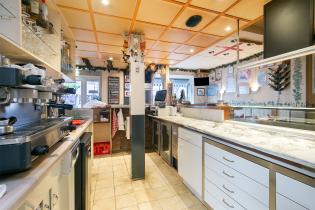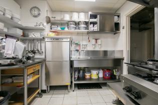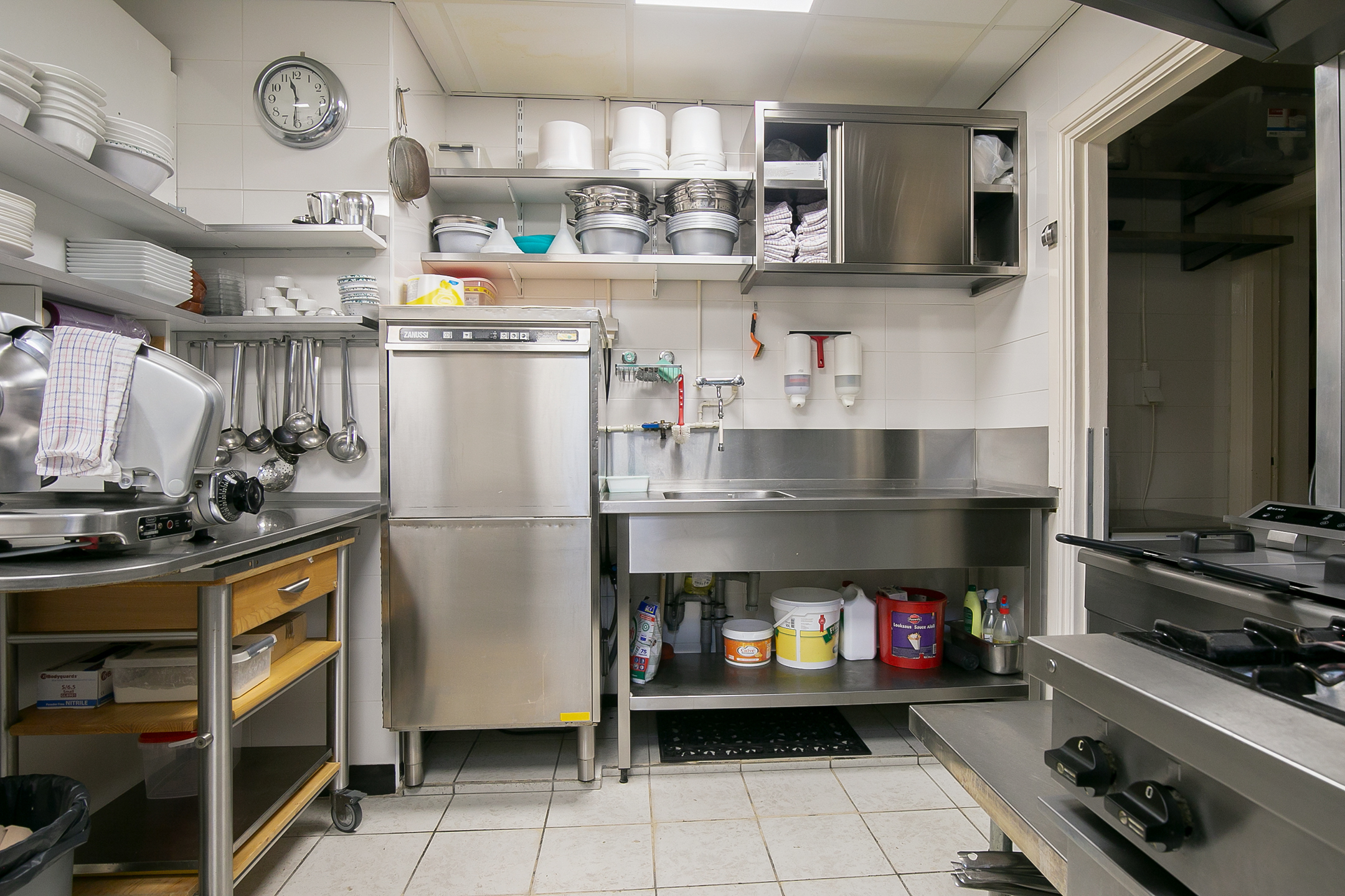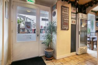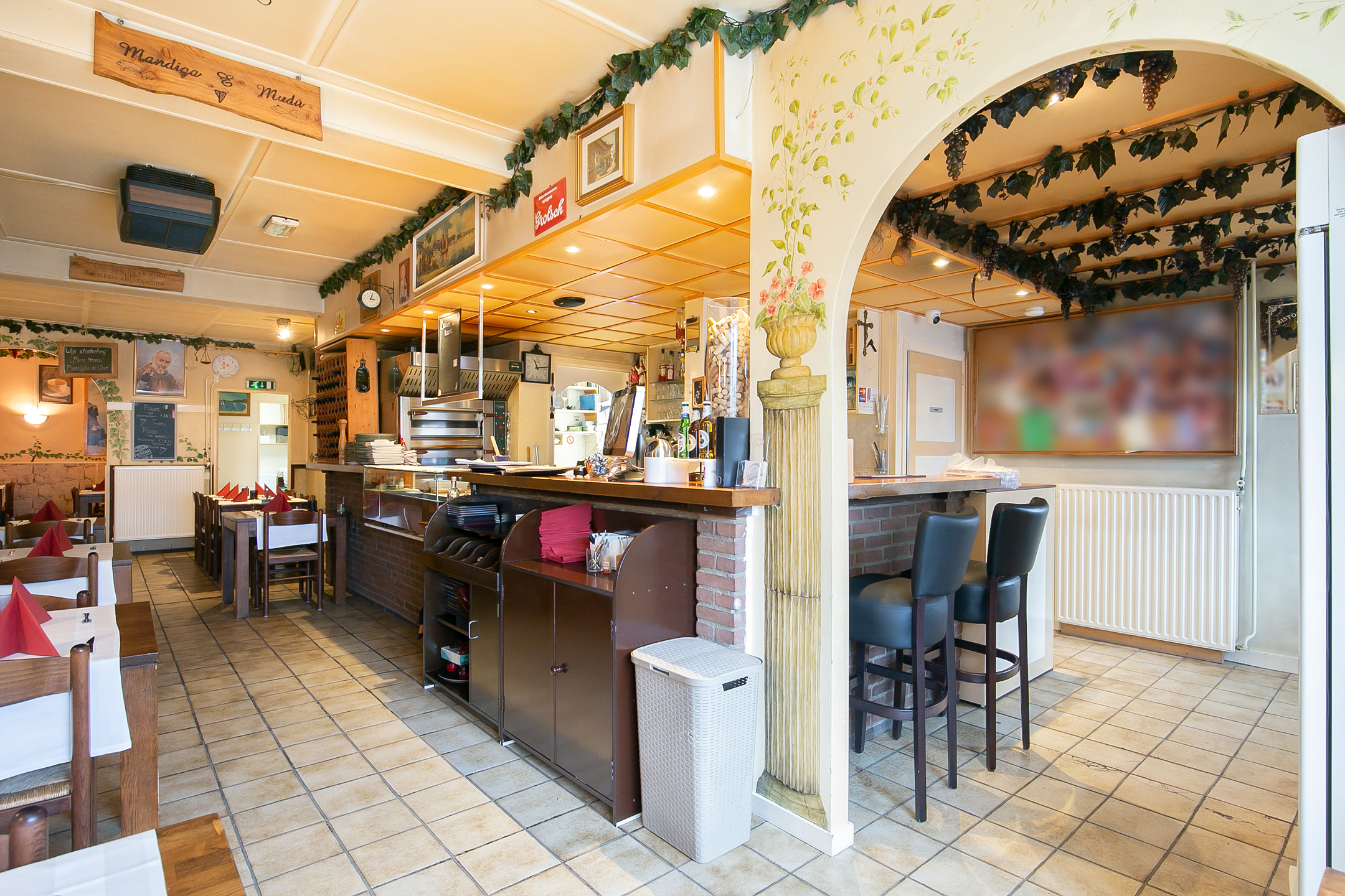 Op dit moment fungeert de begane grond als een sfeervol restaurant, compleet met een charmante erker aan de voorzijde en een goed uitgeruste bar. De restaurantomgeving strekt zich uit naar achteren, waar een semi-aparte zaal en een toegang tot de achter-hal te vinden zijn. De keuken, voorzien van een tegelvloer, een bijkeuken en een trapkast, biedt een functionele en goed doordachte ruimte.