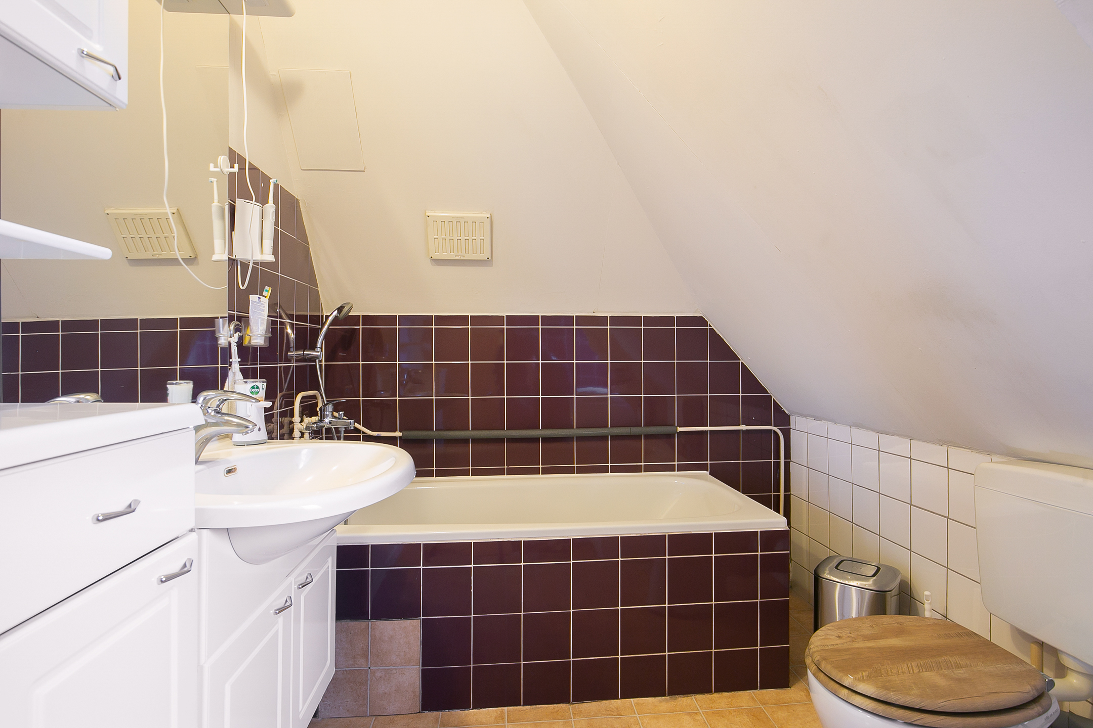 De tweede verdieping herbergt een overloop met drie slaapkamers en een badkamer voorzien van toilet, ligbad en een wastafel met meubel. Een doordachte indeling, en de mogelijkheid om wonen en werken te combineren maken deze woning een unieke en veelbelovende investering.