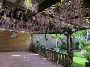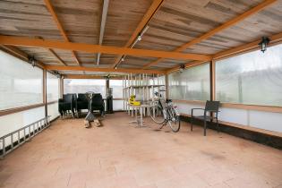 The back hallway leads to a spacious warehouse with a cold room, and a portal with a fountain and two toilets. An additional hallway with storage space, central heating boiler, and French doors to the backyard adds extra versatility to the whole. The extensive garden not only offers a large covered terrace but also the possibility to create access to the parking area at the rear, ideal for those who want to park their own vehicle on their own property.