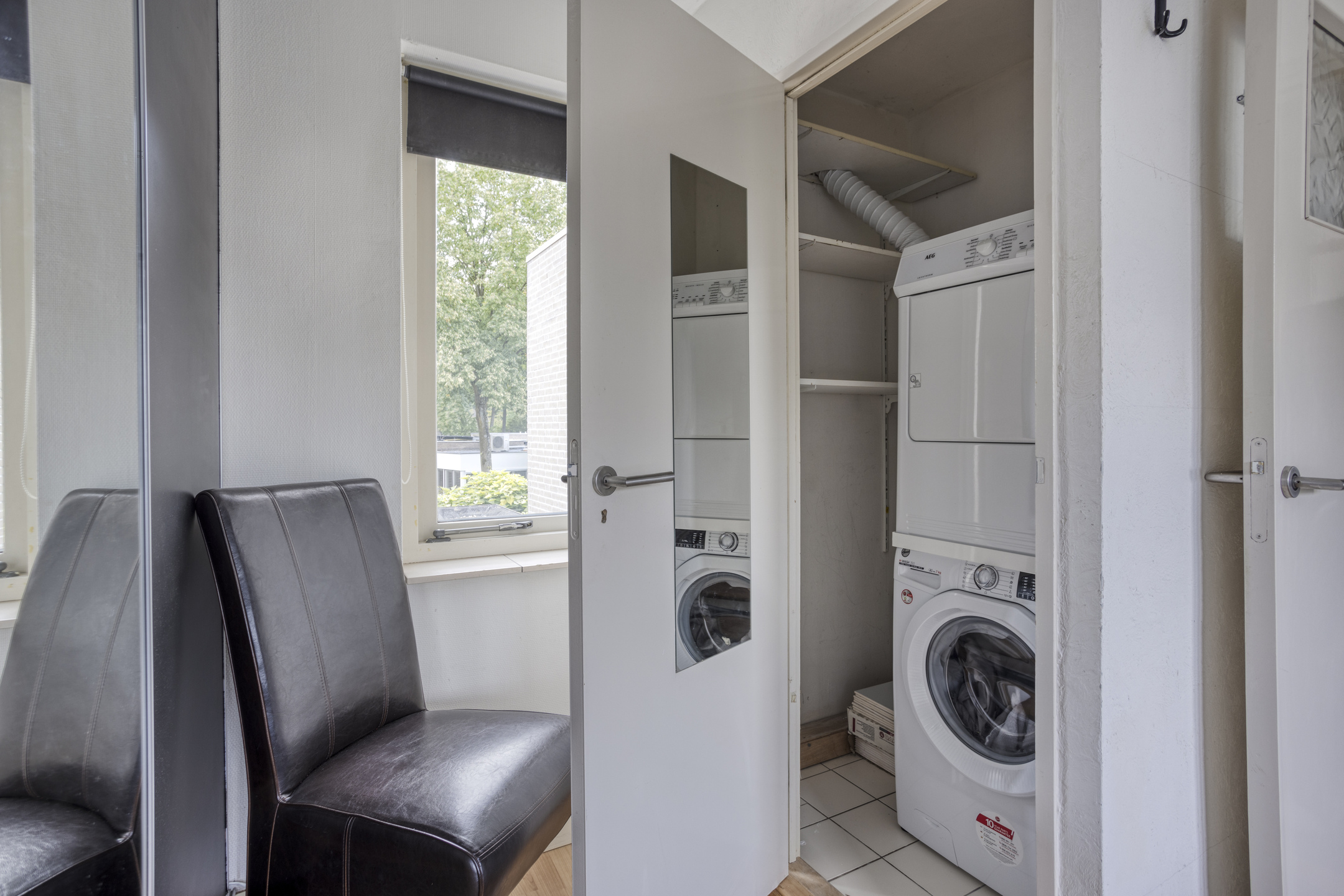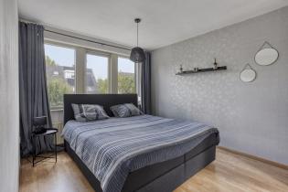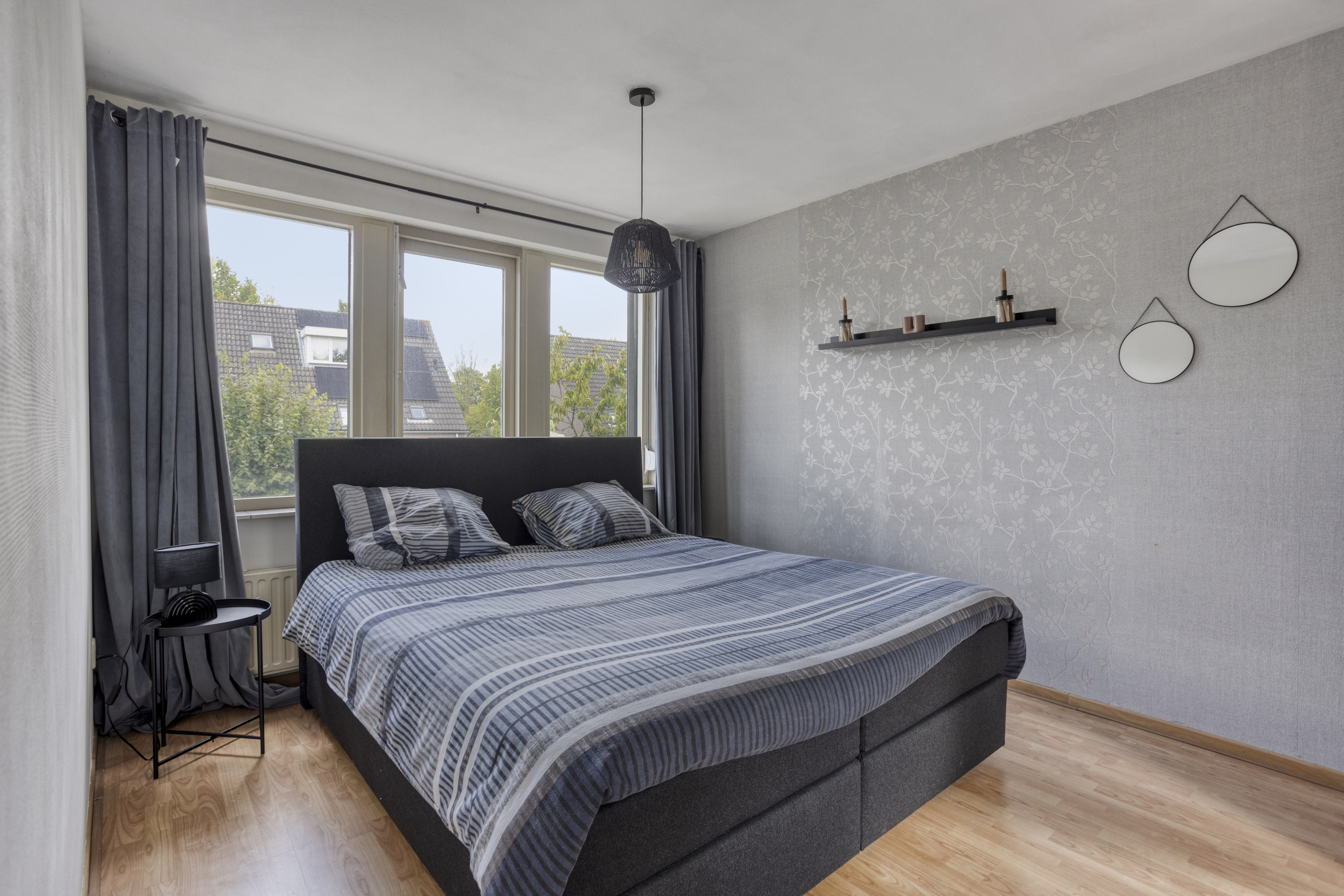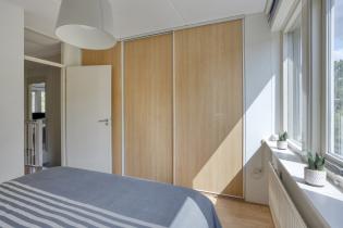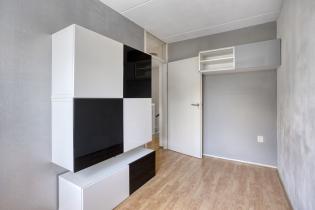 Aan de achterzijde van de woning ligt de tweede slaapkamer (ca. 15 m2). Deze slaapkamer is voorzien van gevelramen aan weerszijden, beide voorzien van een rolluik. Aan de voorzijde van de kamer is een vaste kast met aansluitingen voor de was apparatuur gesitueerd.