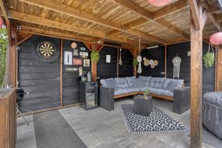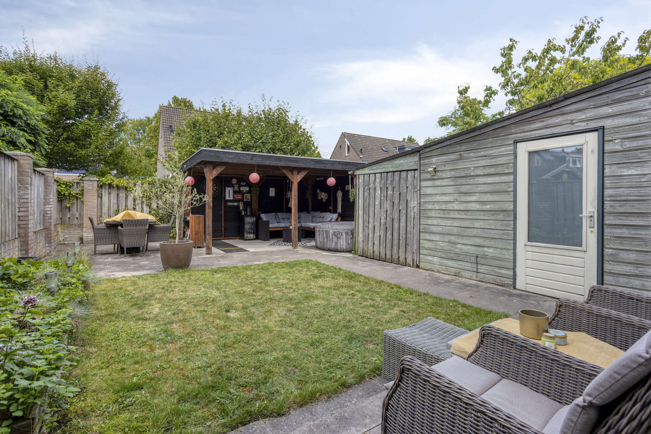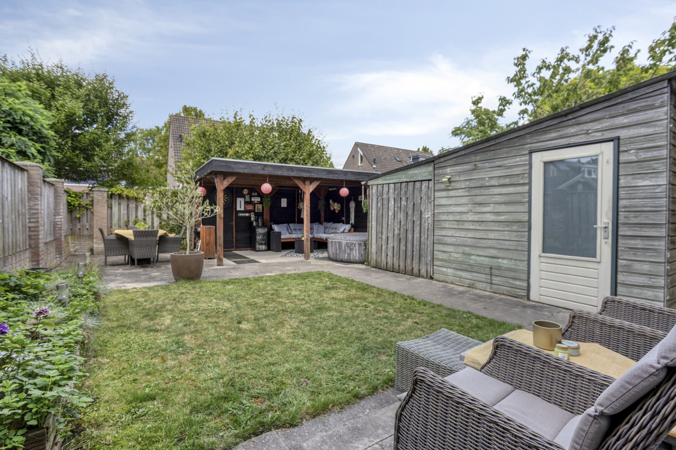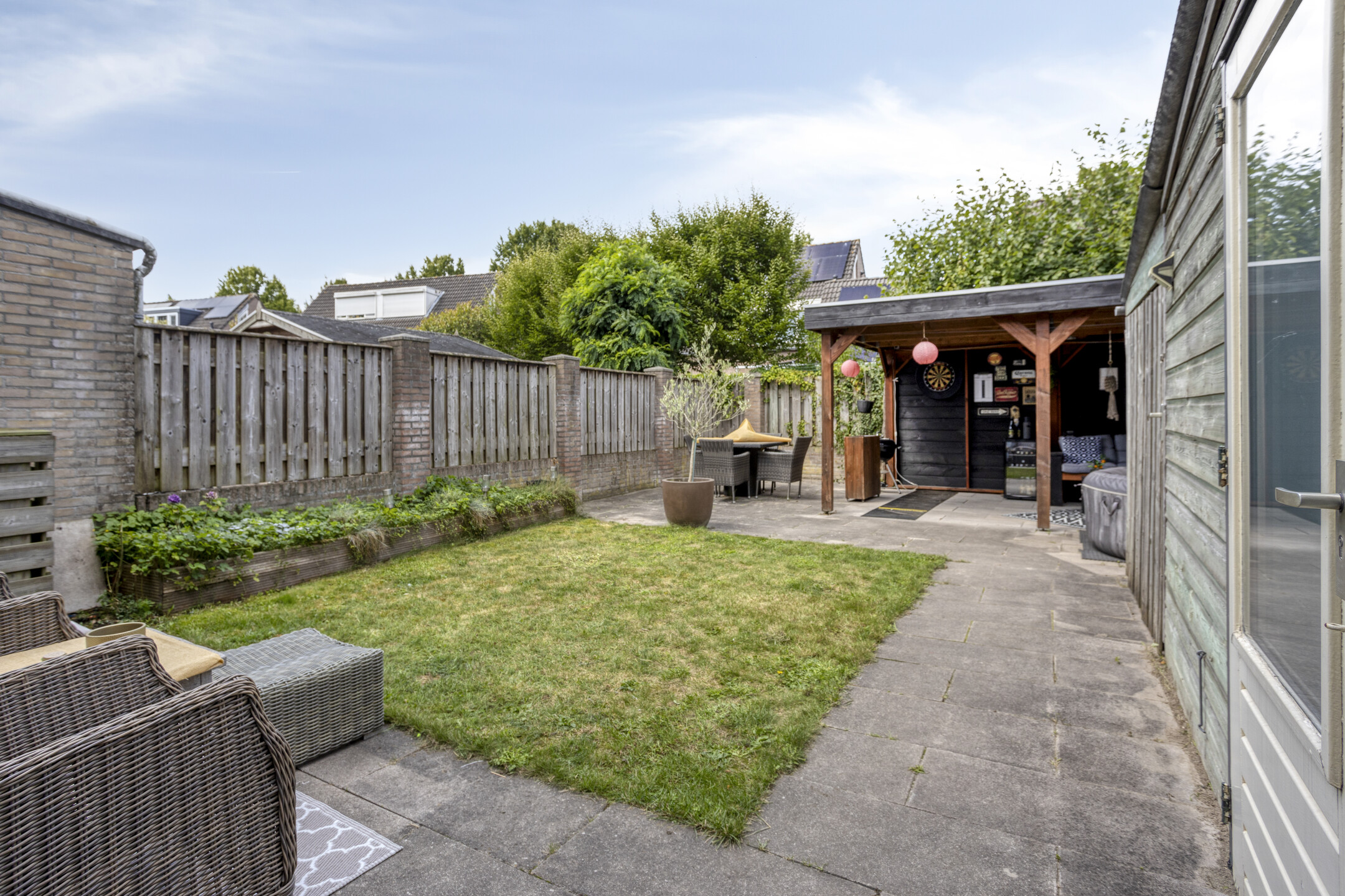 - West-facing garden with covered lounge area