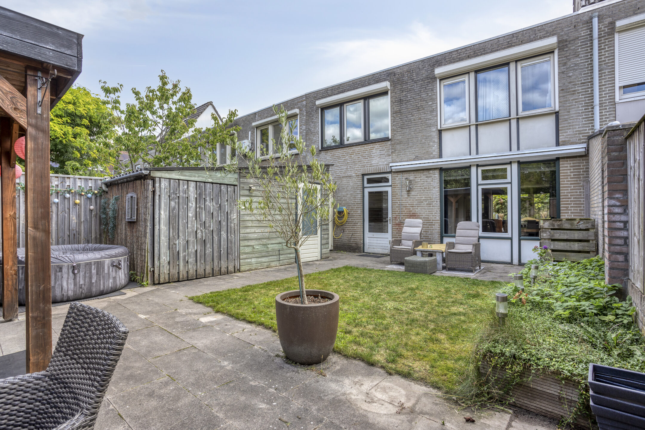 - Achtertuin met overkapping op het Westen