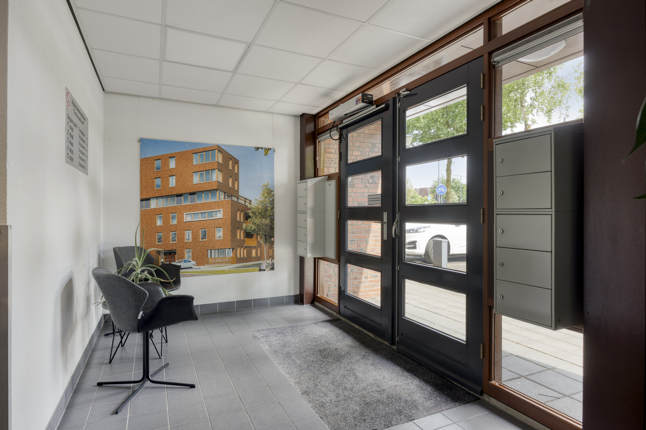 Centrale entree met bellentableau, brievenbussen, toegang tot de lift, het trappenhuis en een verzorgde gezamenlijke binnentuin.