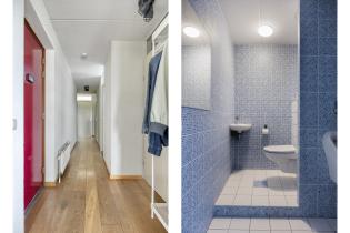 De ruime entreehal biedt toegang tot alle vertrekken: de slaapkamers, badkamer, toiletruimte, wasruimte en de woonkamer.