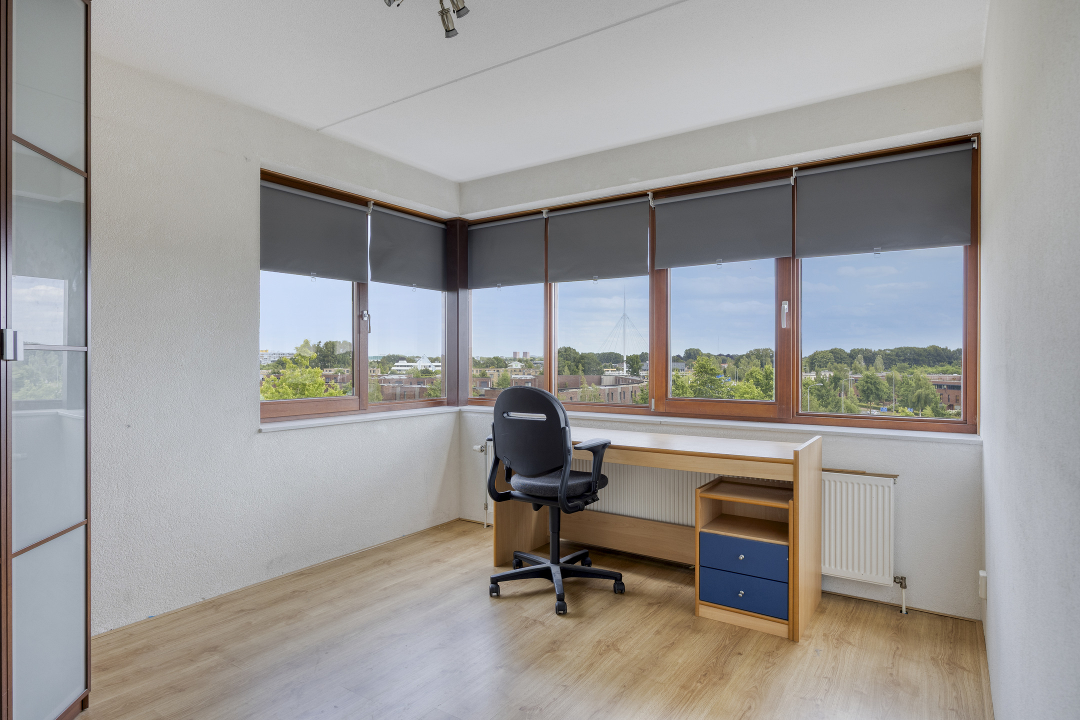De tweede slaapkamer is met ruim 11 m² ideaal als kinder-, werk- of logeerkamer en beschikt eveneens over een mooi vrij uitzicht en dezelfde nette afwerking.