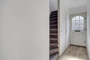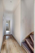 Je betreedt de woning via de voortuin. In de hal vind je de trap naar boven, een handige trapkast met een vernieuwde groepenkast en de gemoderniseerde toiletruimte met een wandcloset.