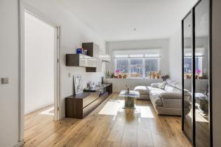 The spacious living area has been extended at the rear, creating a generous open-plan space of approximately 48 m², comprising a lounge, dining area and kitchen. The entire ground floor is fitted with underfloor heating and features a new, warm laminate floor that continues into the hallway. Large sliding doors at the back provide access to the garden.