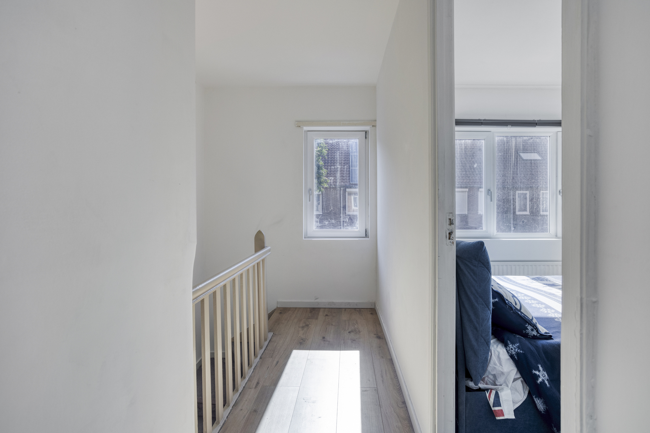 De overloop biedt toegang tot twee ruime slaapkamers en een royale badkamer.