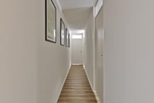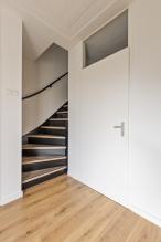 Via de vaste trap in de hal kom je uit op de overloop. De overloop is voorzien van een pvc-vloer en geeft toegang tot de slaapkamers en de badkamer.
