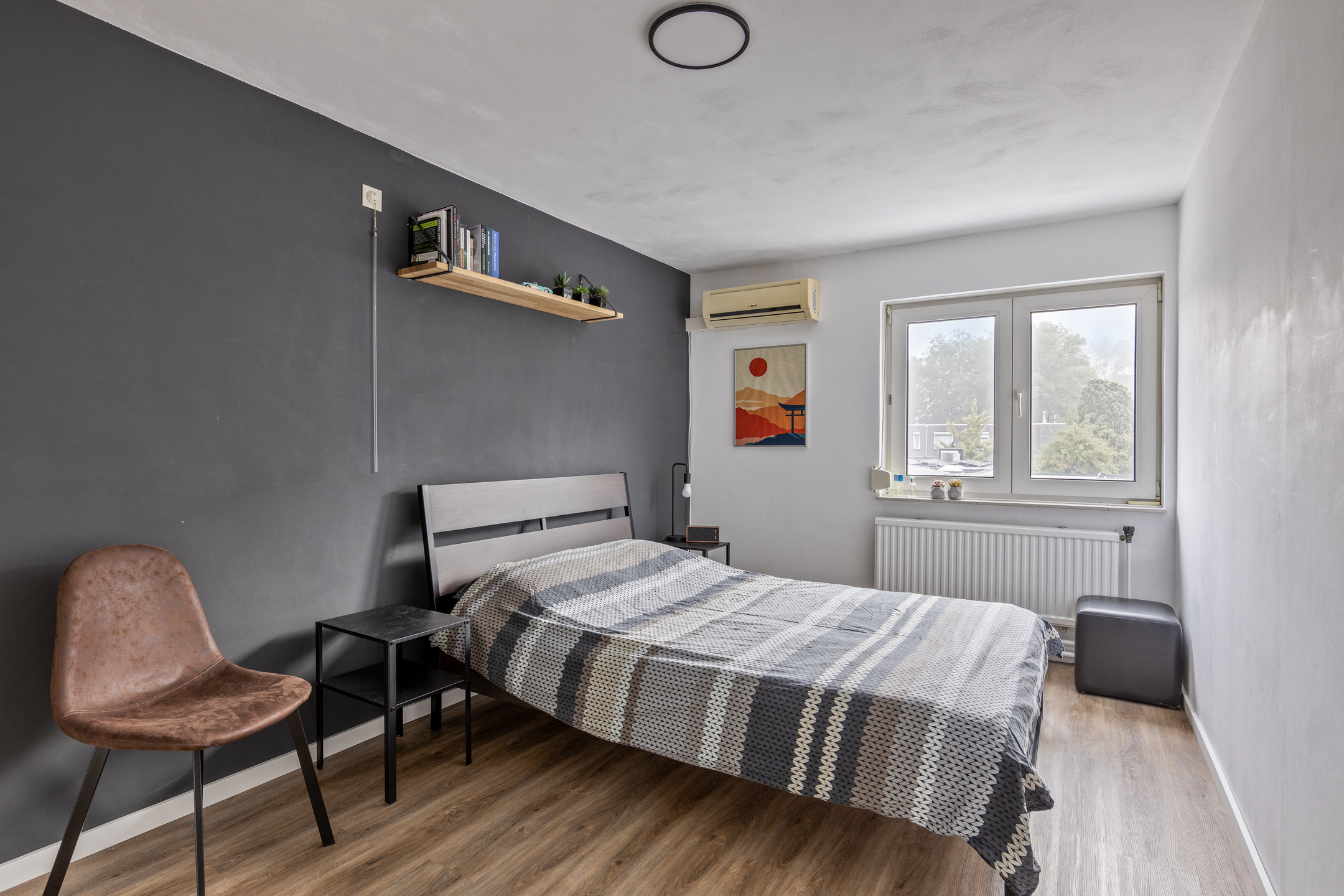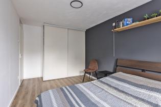 Slaapkamer 1: de master bedroom is voorzien van een pvc-vloer, een airco, kunststof kozijnen met dubbele beglazing en een rolluik.