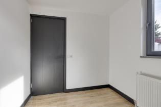Slaapkamer 2 is gericht naar de tuinzijde met een pvc-laminaatvloer, kunststof kozijnen met tripelleglas, draai kiep en ventilatie.