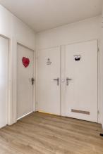 From the gallery on the third floor — where the meter cupboard is also located — you enter the apartment. The hallway, fitted with a neat laminate floor and intercom, provides access to all rooms.