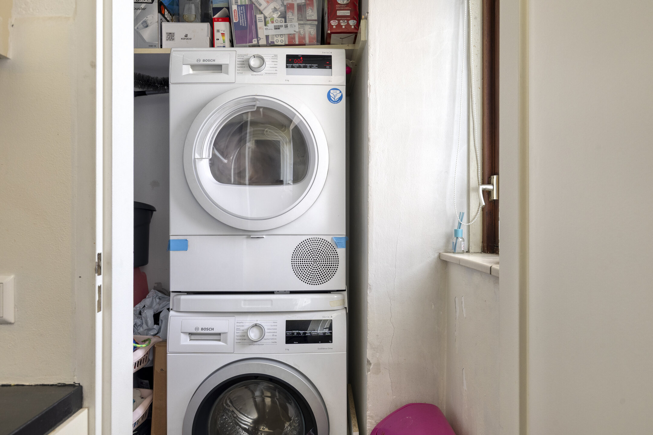 Aangrenzend vindt u een praktische berging, die dienst kan doen als provisieruimte en is voorzien van aansluitingen voor wasapparatuur.