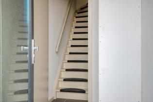 De overloop op de eerste verdieping biedt toegang tot alle vertrekken en het toilet.