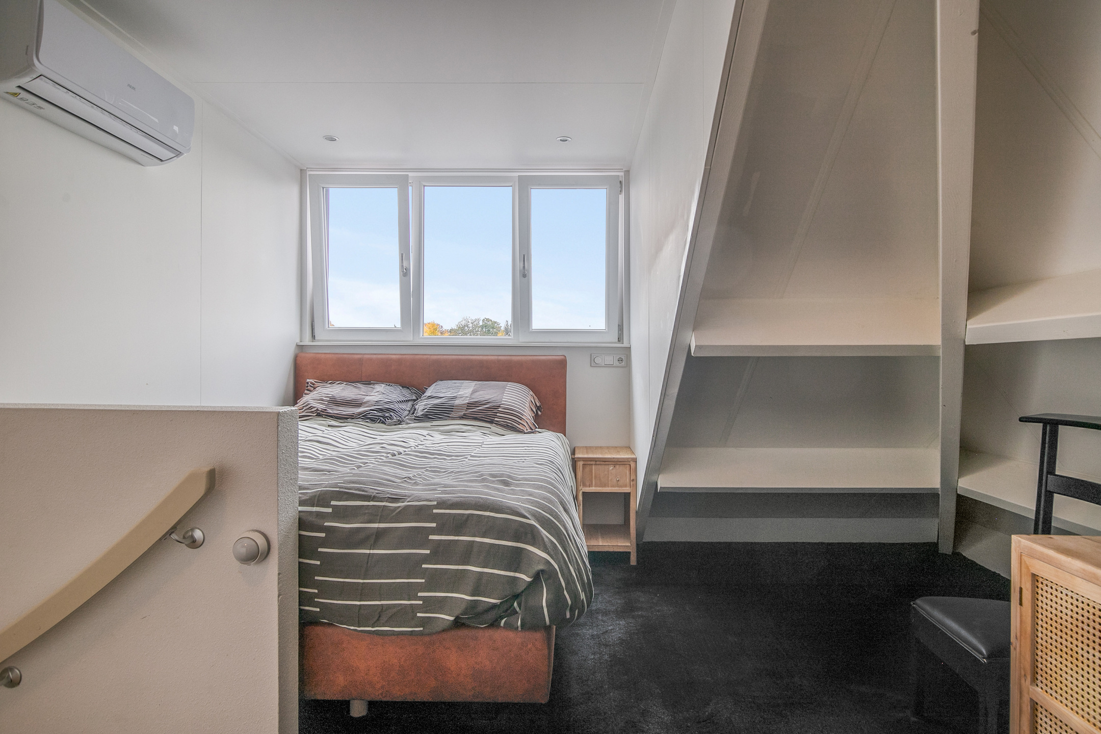 Op de tweede verdieping bevindt zich de slaapkamer met dakkapel aan de achterzijde, vaste kastruimte en airconditioning (2022). De ruimte is sfeervol afgewerkt en beschikt over inbouwspots en draai/kiepramen. Aansluitend is er een bergruimte (gebruikt als kastruimte) met de cv-installatie (Nefit, 2015) en mechanische ventilatie. Ook hier zijn elektrische rolluiken aanwezig.