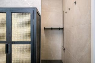 Through the private entrance on the ground floor, you reach the hall with the meter cabinet and staircase. The hall features a tiled floor and modern finishing.