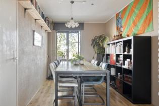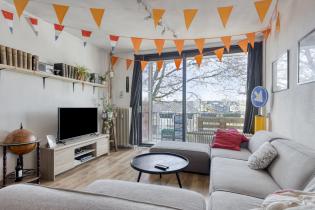 De woonkamer is lekker licht dankzij de grote schuifpui naar het balkon en biedt voldoende ruimte voor een gezellige zithoek en eettafel. Het balkon, gelegen op het zuidwesten, is de ideale plek om van de zon te genieten.