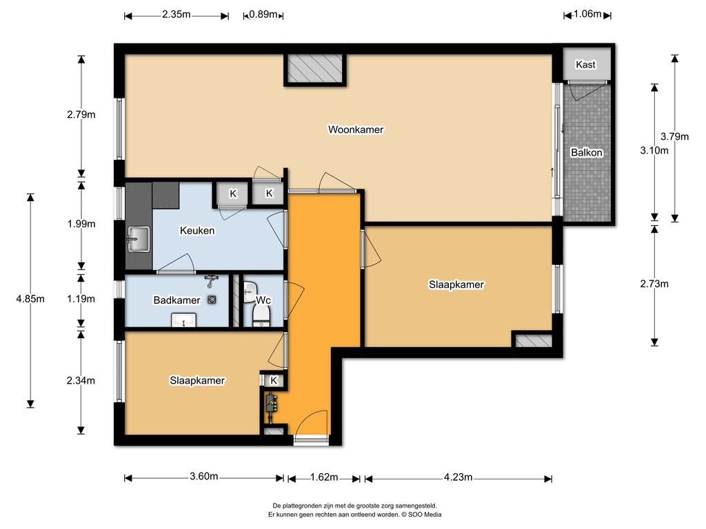 Het appartement beschikt over 2 slaapkamers, beide voorzien van laminaatvloeren, waarvan één met een vaste kast. In het souterrain is er bovendien een eigen berging, ideaal voor bijvoorbeeld fietsen of extra opslagruimte.
