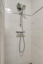 Naast de slaapkamer bevindt zich de moderne badkamer. Deze geheel betegelde ruimte beschikt over een nette inloopdouche met vernieuwde glazen deur, een ligbad, een wastafel in fraai meubel en een spiegelkast.