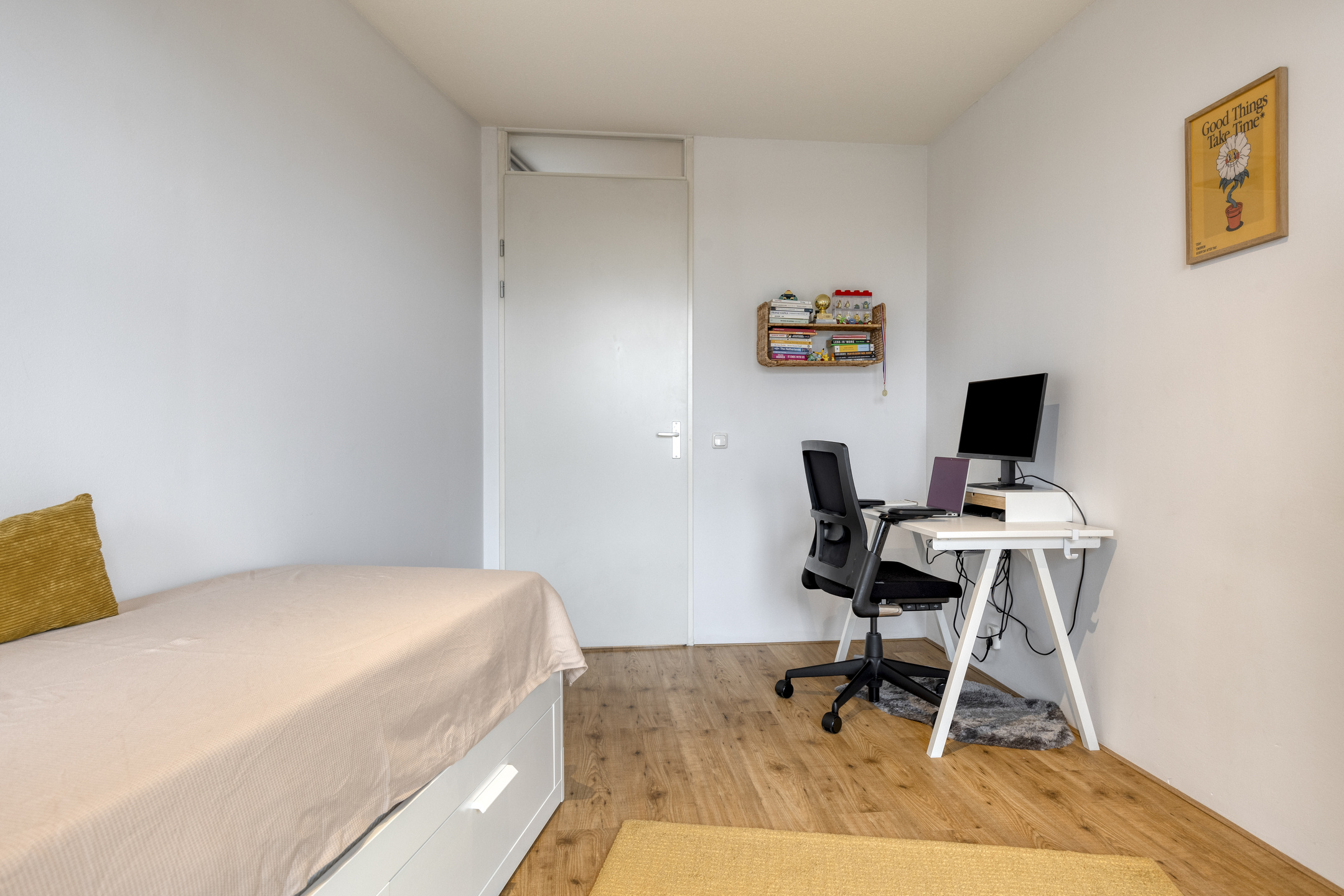 The first bedroom (approx. 16 m²) is located at the front and is very spacious. It features a neat laminate floor, aluminium window frames, and HR++ double glazing.