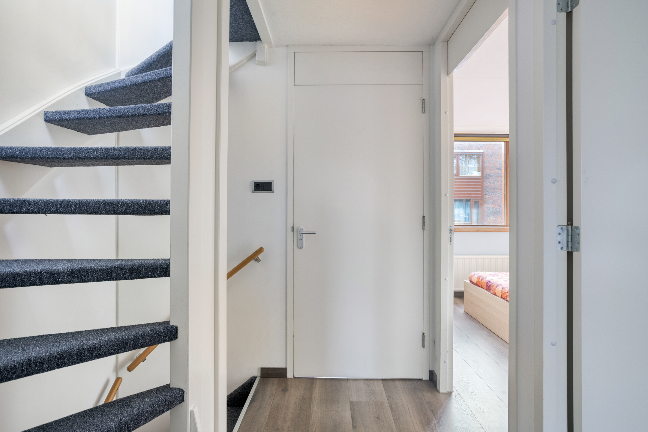 Via the fixed staircase you reach the second floor. Here you will find a practical utility space with connections for a washing machine and dryer, as well as the mechanical ventilation unit.