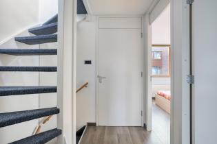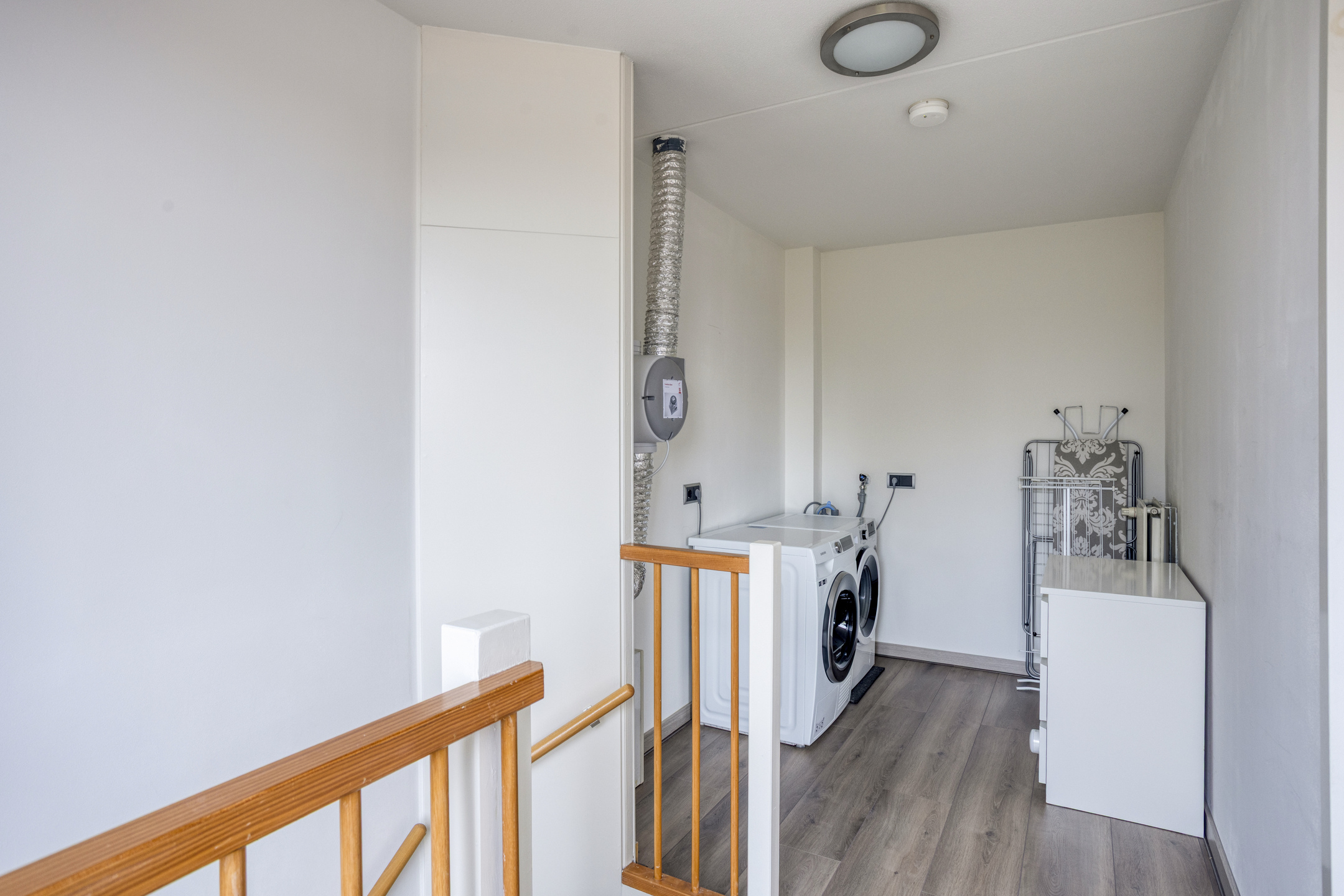 Via de vaste trap op de eerste verdieping kom je op de tweede verdieping. Hier bevindt zich een praktische ruimte met aansluitingen voor wasmachine en droger en opstelling van de mechanische ventilatie.