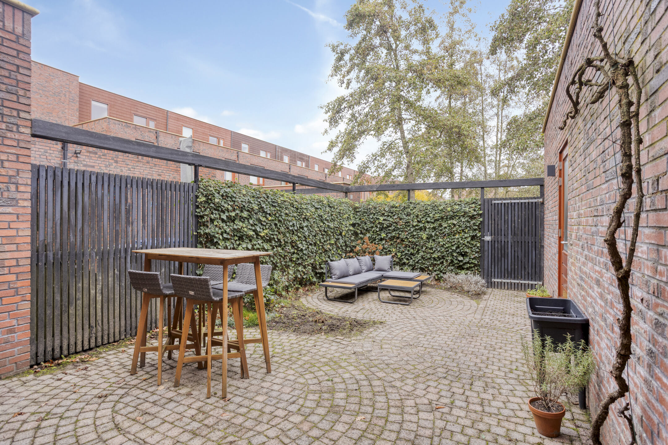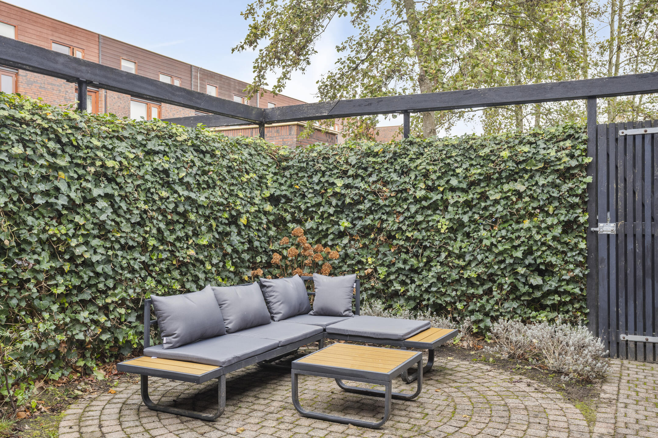 De onderhoudsvriendelijke achtertuin is voorzien van sfeervolle bestrating en groene hagen voor optimale privacy. Er is volop ruimte voor een loungehoek én een buitentafel. In de achtertuin bevindt zich de stenen berging, ideaal voor fietsen en opslag.