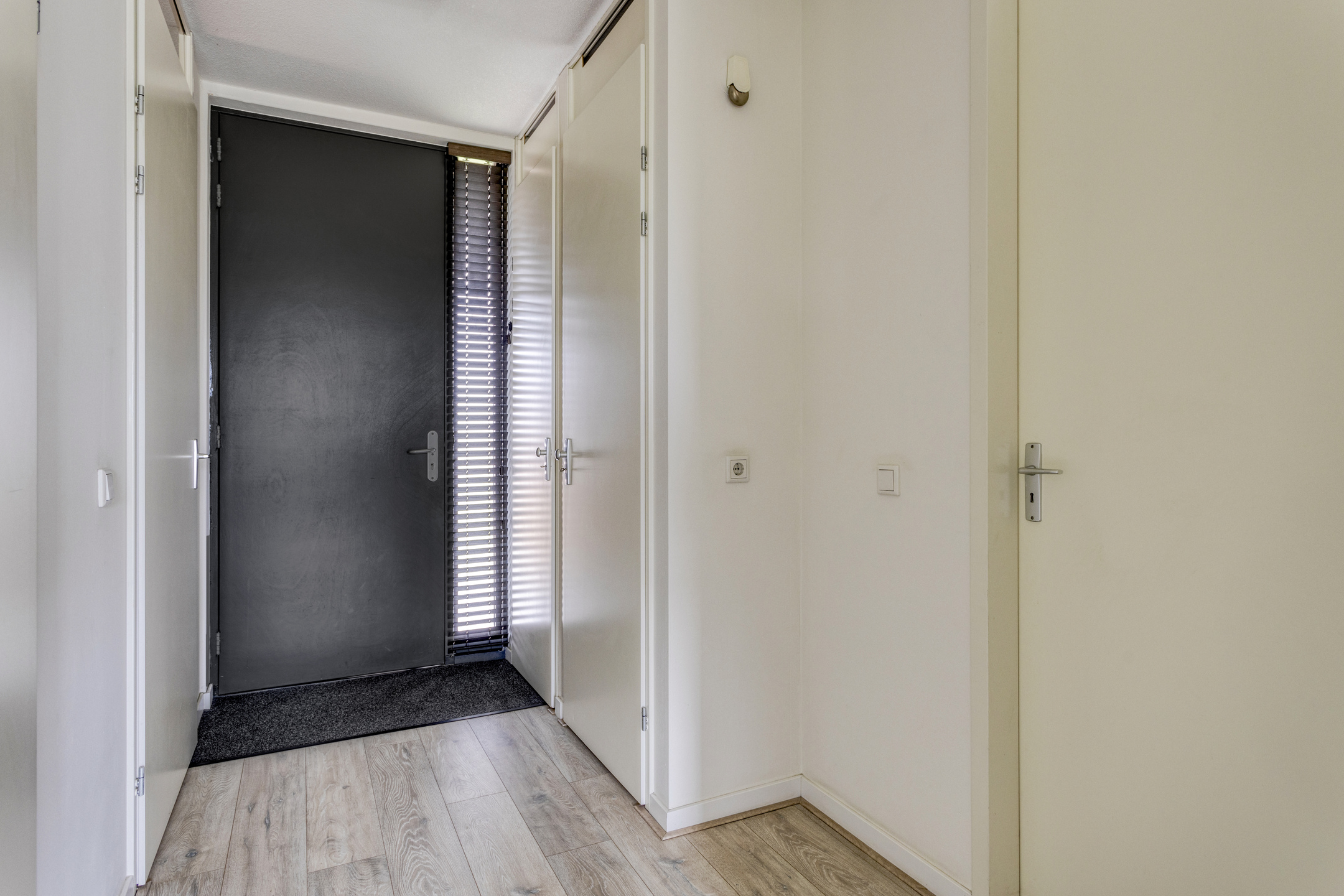 Bij aankomst op de eerste verdieping, bereik je via de overdekte galerij dit fraaie en lichte appartement. De centrale hal vormt het hart van de woning en biedt toegang tot alle vertrekken.