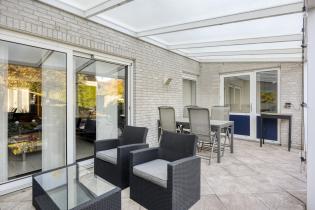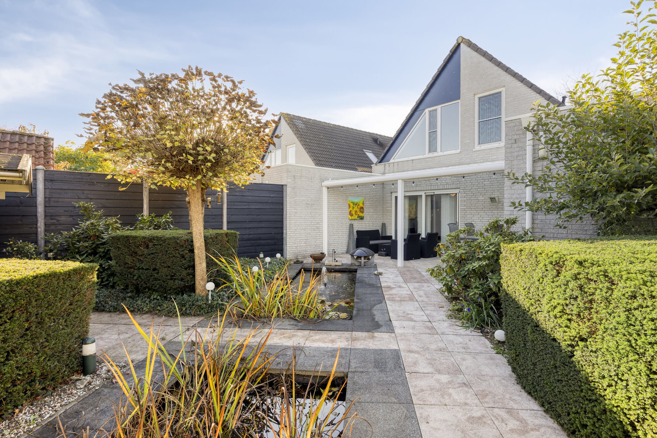 • Zonnige tuin op het zuidoosten met overkapping en vijver