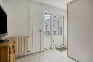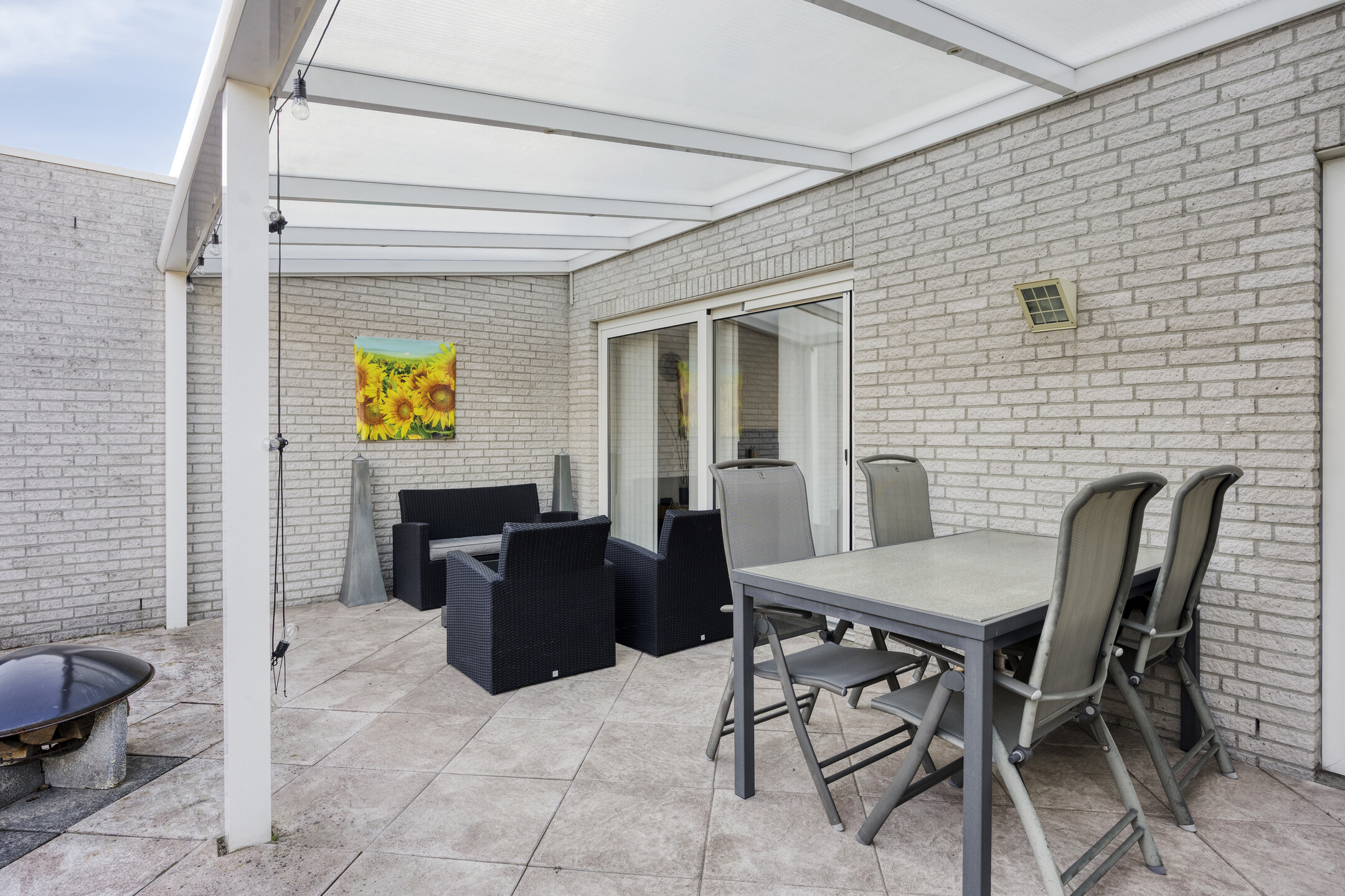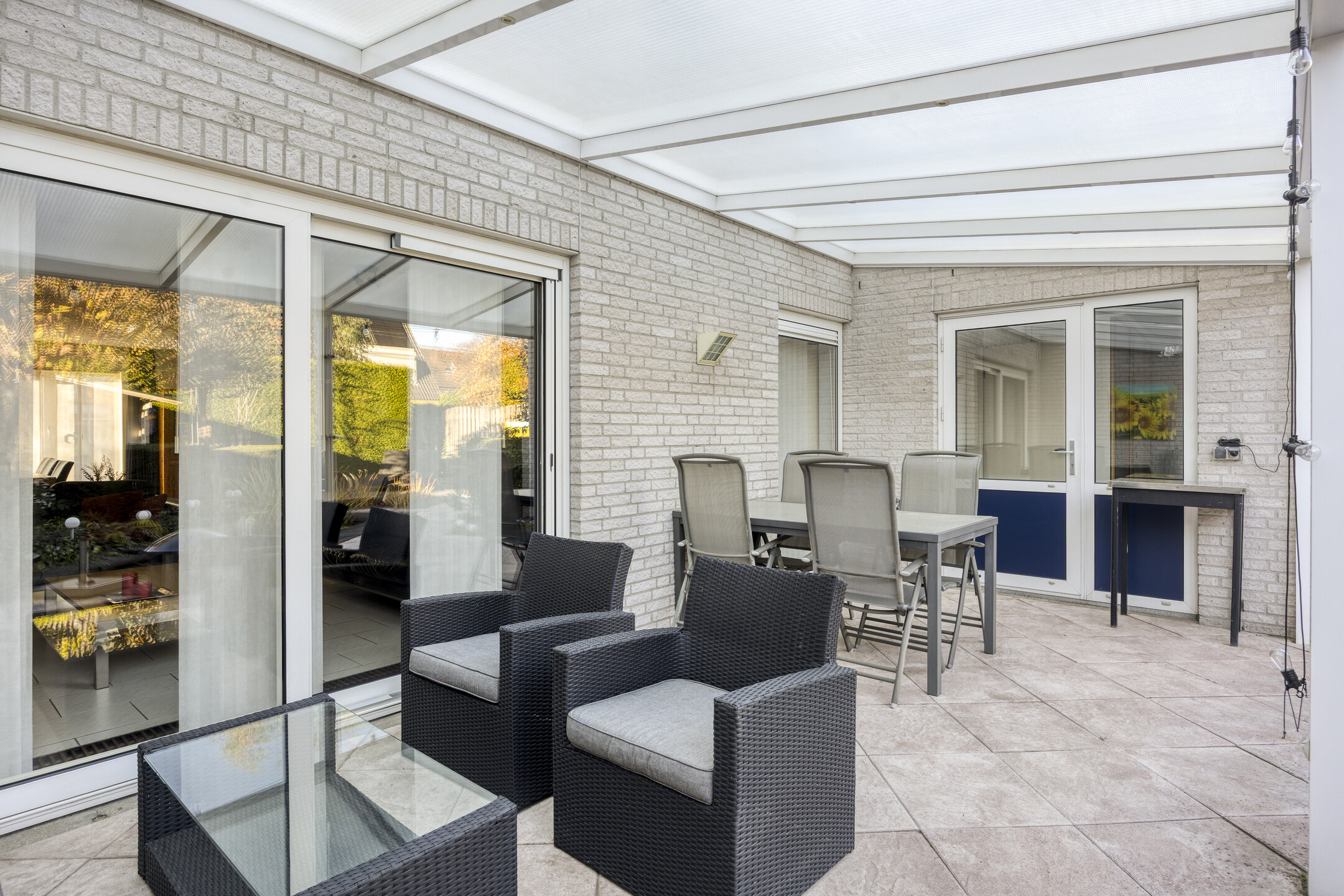 Vanuit de woonkamer is er toegang tot een portaal met doorgang naar de garage, wasruimte en een achterkamer. Deze ruimte kan uitstekend dienen als slaapkamer op de begane grond, maar ook als werk- of hobbykamer. Deze is voorzien van een airco. De garage is voorzien van een elektrische deur, en de wasruimte tussen de garage en achterkamer biedt mogelijkheden om uit te breiden en een badkamer op de begane grond te realiseren.
