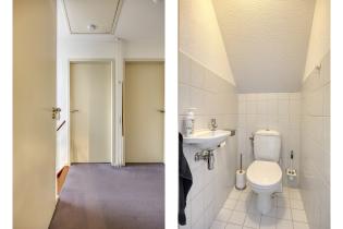 Vanaf de overloop zijn drie slaapkamers, de toiletruimte, de badkamer en de bergzolder (via vlizotrap) bereikbaar.