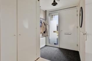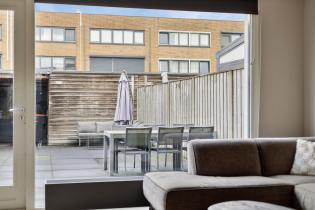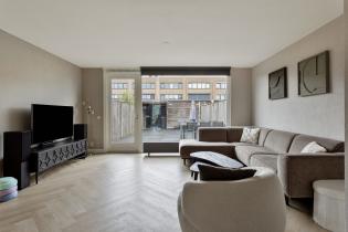 Via de hal/entree met meterkast en vernieuwde toiletruimte met fonteintje kom je binnen in de woning. De lichte, tuingerichte woonkamer beschikt over een grote glazen pui tot aan de vloer en een loopdeur naar de achtertuin, wat zorgt voor veel daglicht en een ruimtelijk gevoel. Dankzij de aanwezige ruimte is hier een gezellige leefruimte te creëren.