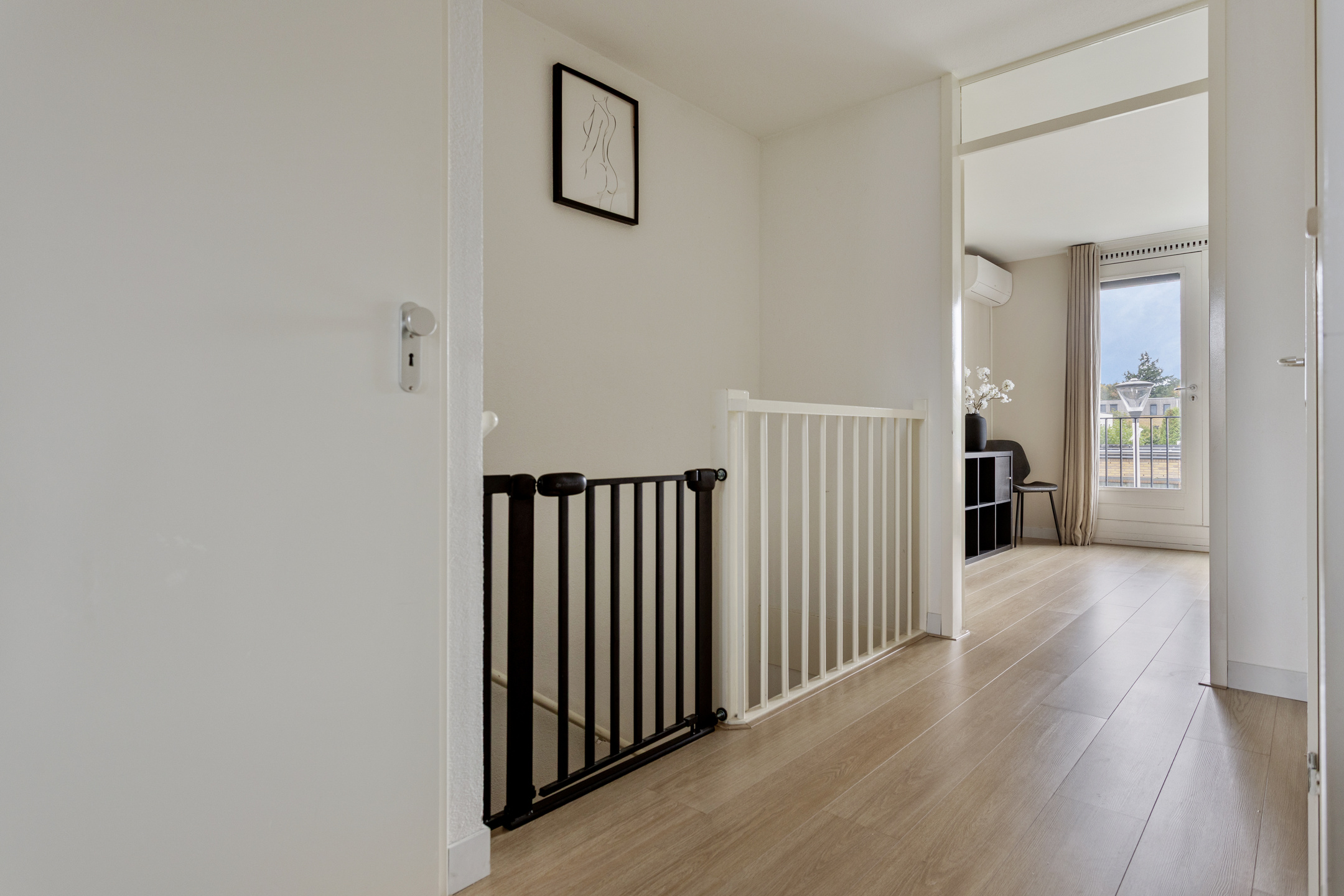 De gehele verdieping is voorzien van een laminaatvloer, wat zorgt voor een warme en verzorgde uitstraling.