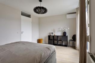 Op deze verdieping bevinden zich drie slaapkamers. De hoofdslaapkamer aan de voorzijde is ruim van opzet, heeft gladgestucte wanden en plafond, is uitgerust met een airconditioning en beschikt over een Frans balkon. De 2e slaapkamer heeft dezelfde strakke afwerking als de hoofdslaapkamer. De derde kamer wordt momenteel gebruikt als kastenkamer en is afgewerkt met spuitwerk.