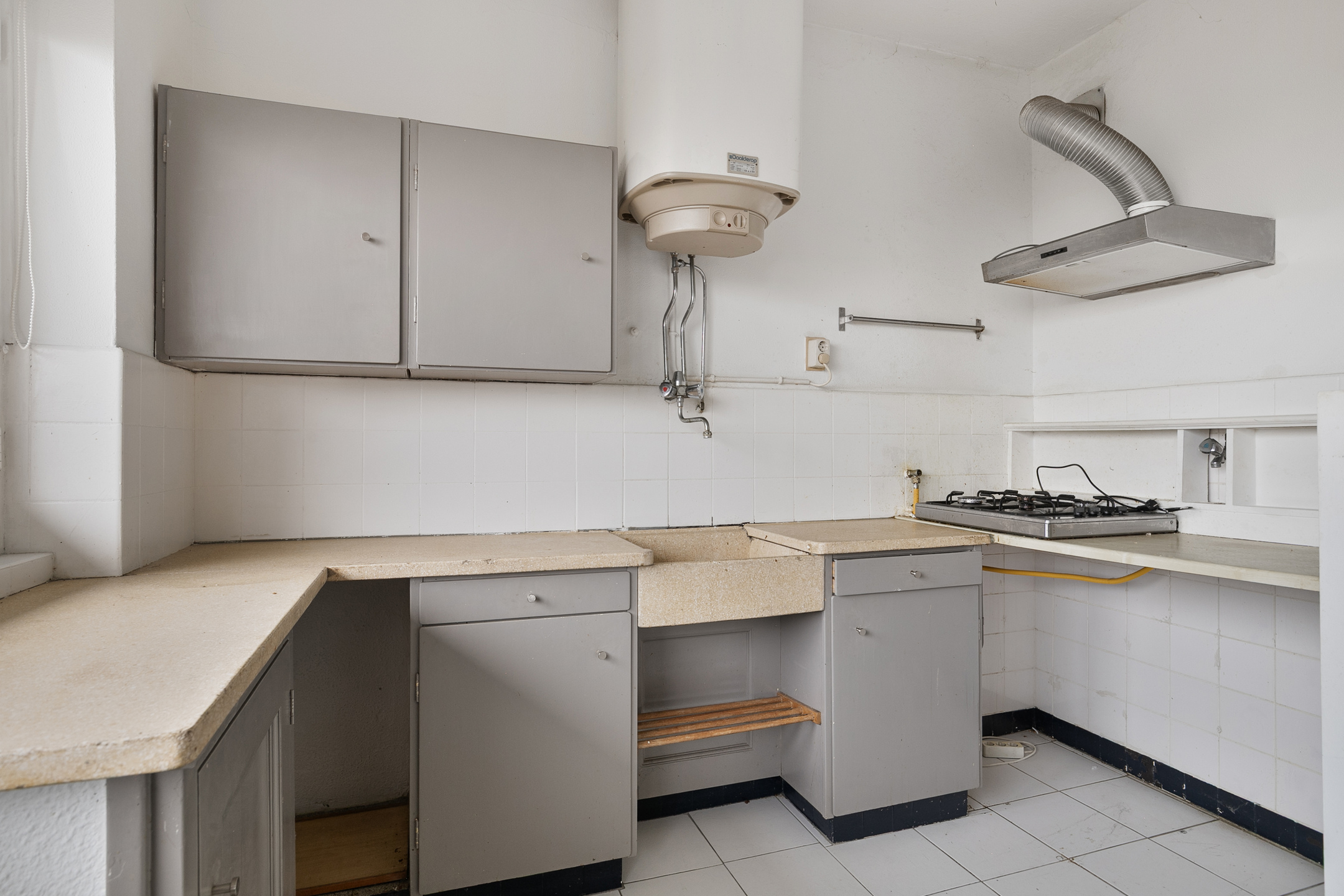 De keuken ligt aan de voorzijde van het appartement en is voorzien van een granieten aanrechtblad, gaskookplaat en afzuigkap. Vanuit de keuken is een bergkast toegankelijk. De vloer is hier betegeld.