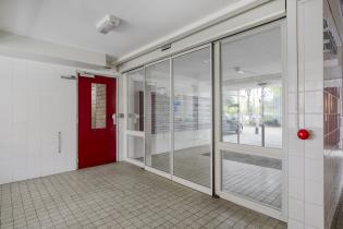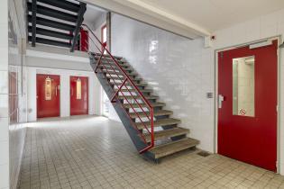 Via een dubbele toegangsdeur bereikt u de centrale hal met brievenbussen en het belbord. Elektrische schuifdeuren geven toegang tot de liften en de trappenhal. In de hal is tevens een zitje aanwezig.