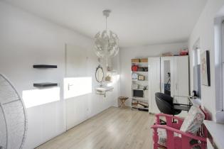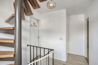 A staircase next to the hallway leads to the landing. Here you will find three spacious bedrooms, each with large windows offering plenty of natural light. The landing is equipped with air conditioning that cools both the hallway and the bedrooms.