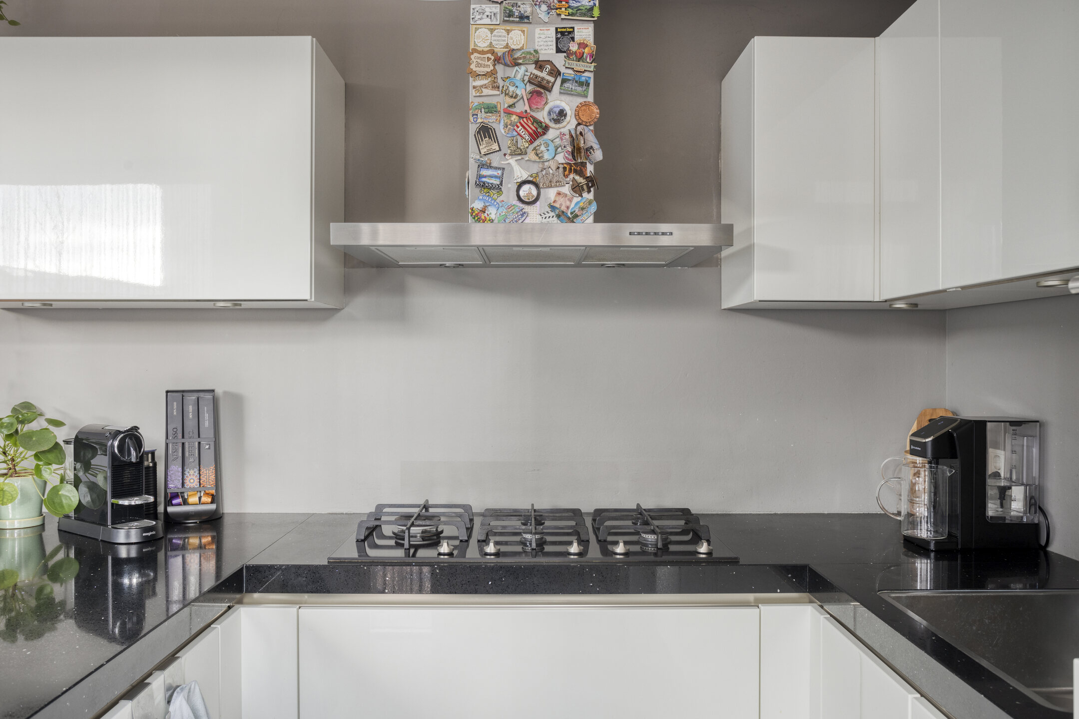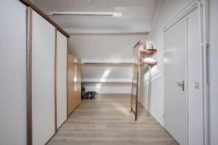 Daarnaast is er een aparte ruimte met de aansluitingen voor het wasapparatuur en ruimte voor alle extra spullen.