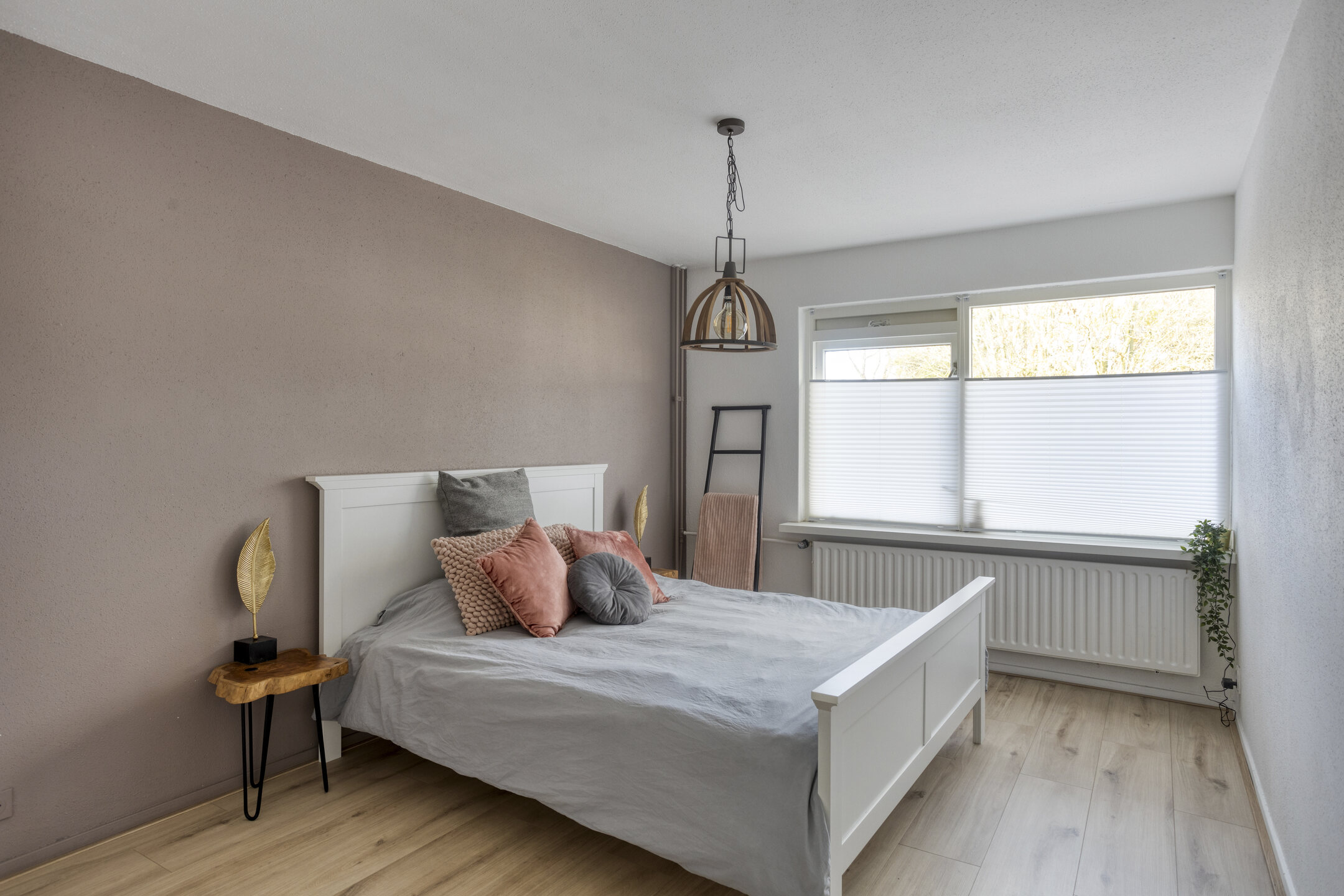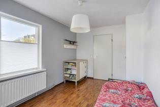 Slaapkamer 2 (ca. 14m2) is gelegen aan de voorzijde en voorzien van een laminaatvloer en hardhouten kozijnen met dubbele beglazing.